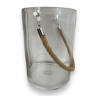 Porta candela trasparente con manico in Juta da Ø 20 x h 28 cm