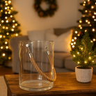 - Porta Candela Trasparente con Manico in Juta, diametro di Ø 20 cm e altezza di 28 cm, per una luce incantevole.