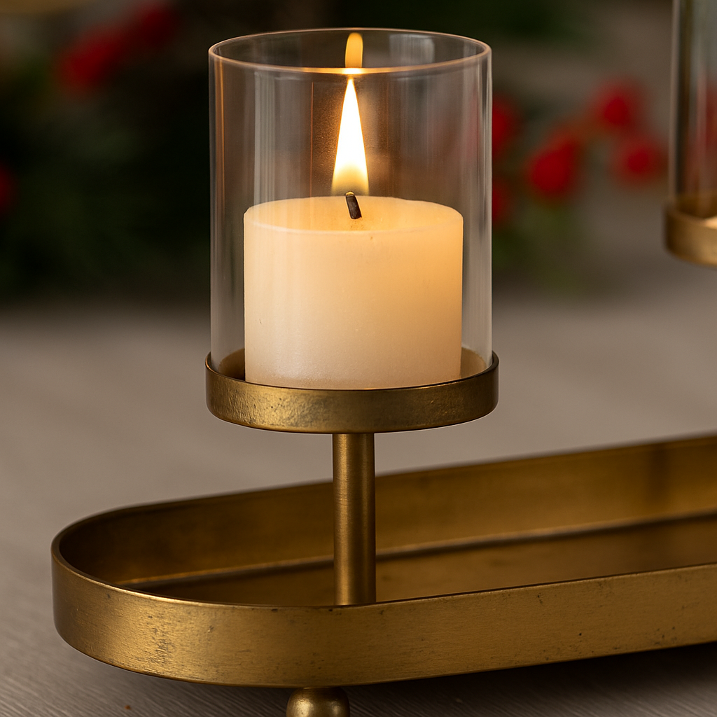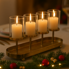 Porta candele in ferro colore champagne, centro tavola per cena natalizia con tubi in vetro, da 4 posti
