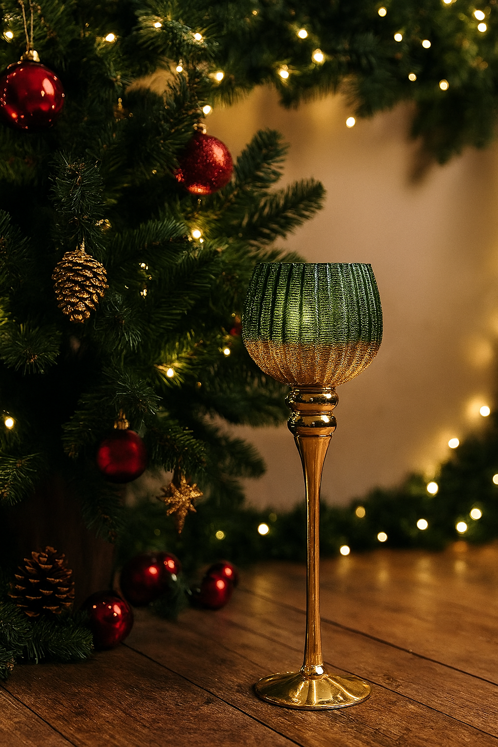Porta candele per tre con abete rosso per decorazioni natalizie h 40 cm