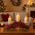 Ogni porta candela è adornato con delicate bacche rosse, evocando l'atmosfera festiva e calda delle festività invernali.