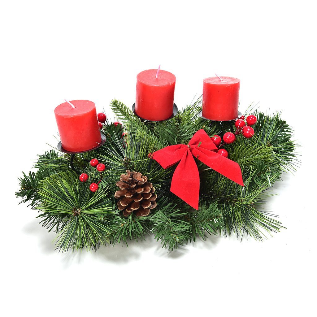 Portacandela a 3 fuochi con pigne, centrotavola da 36 x 16 x 12,5 cm