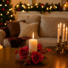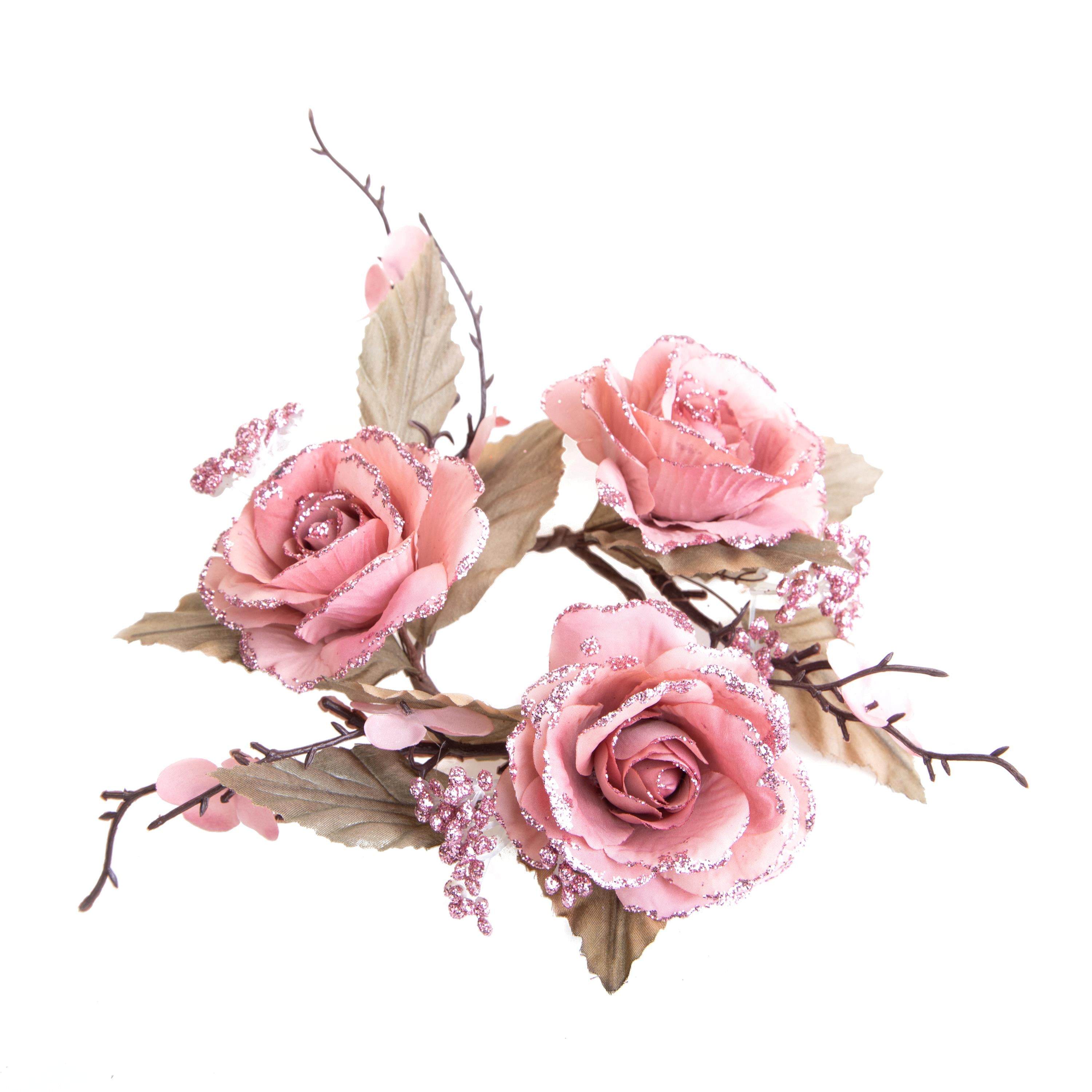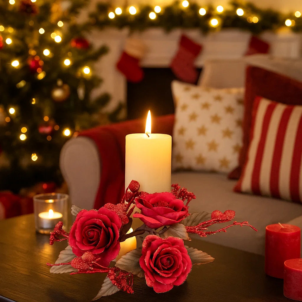Portacandela decorativo con rose e bacche per decorazioni natalizie 15 cm