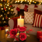 Aggiungi un tocco romantico ed elegante alle tue feste con il Portacandela decorativo con rose e bacche da 15 cm.