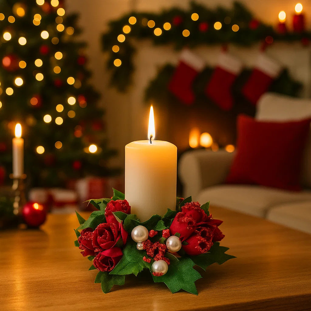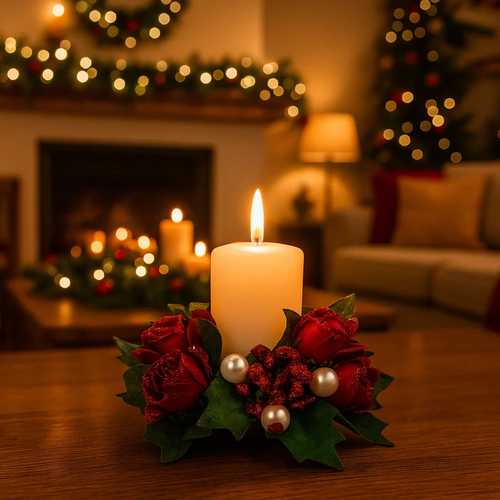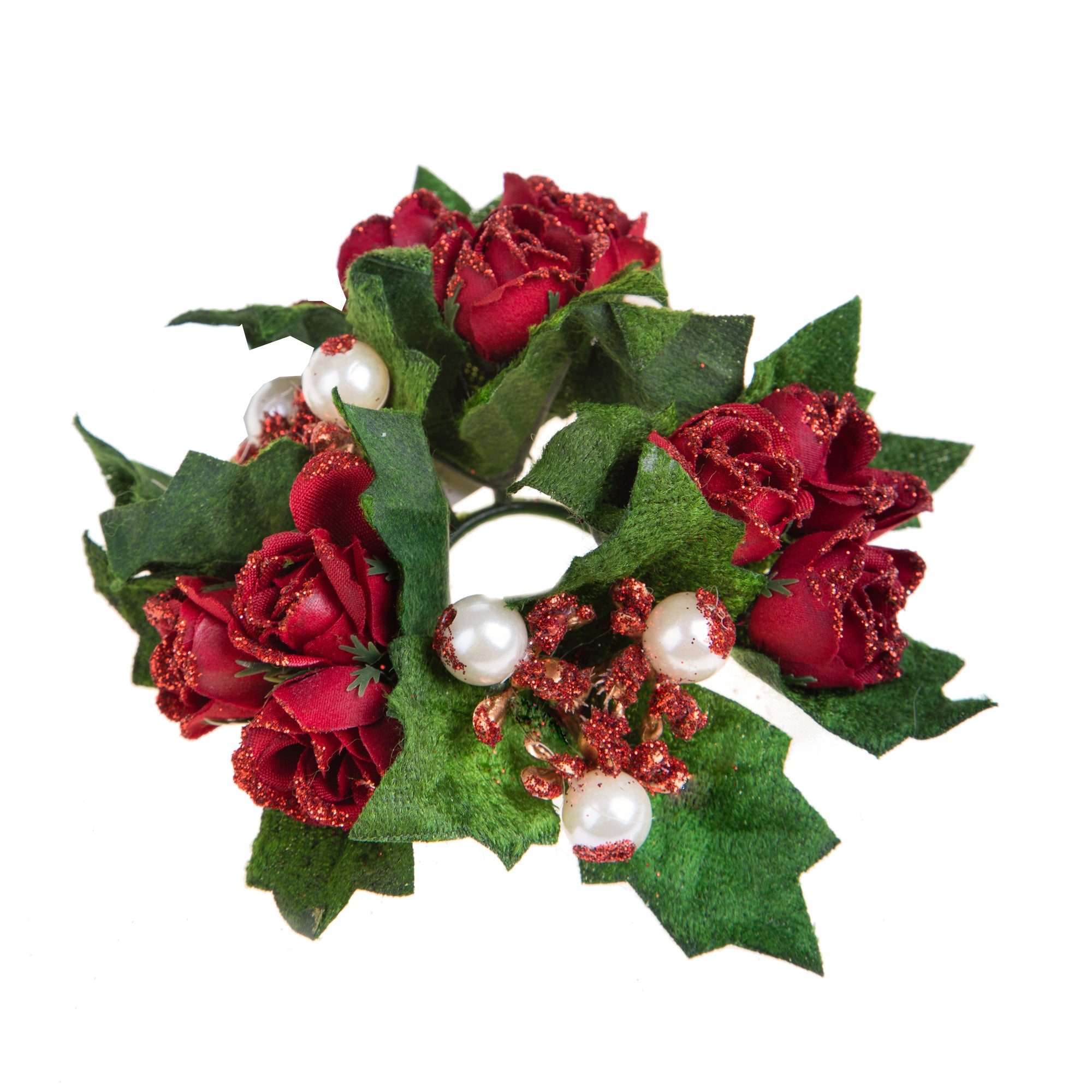 Portacandela decorativo con rose e perle per decorazioni natalizie