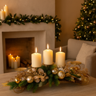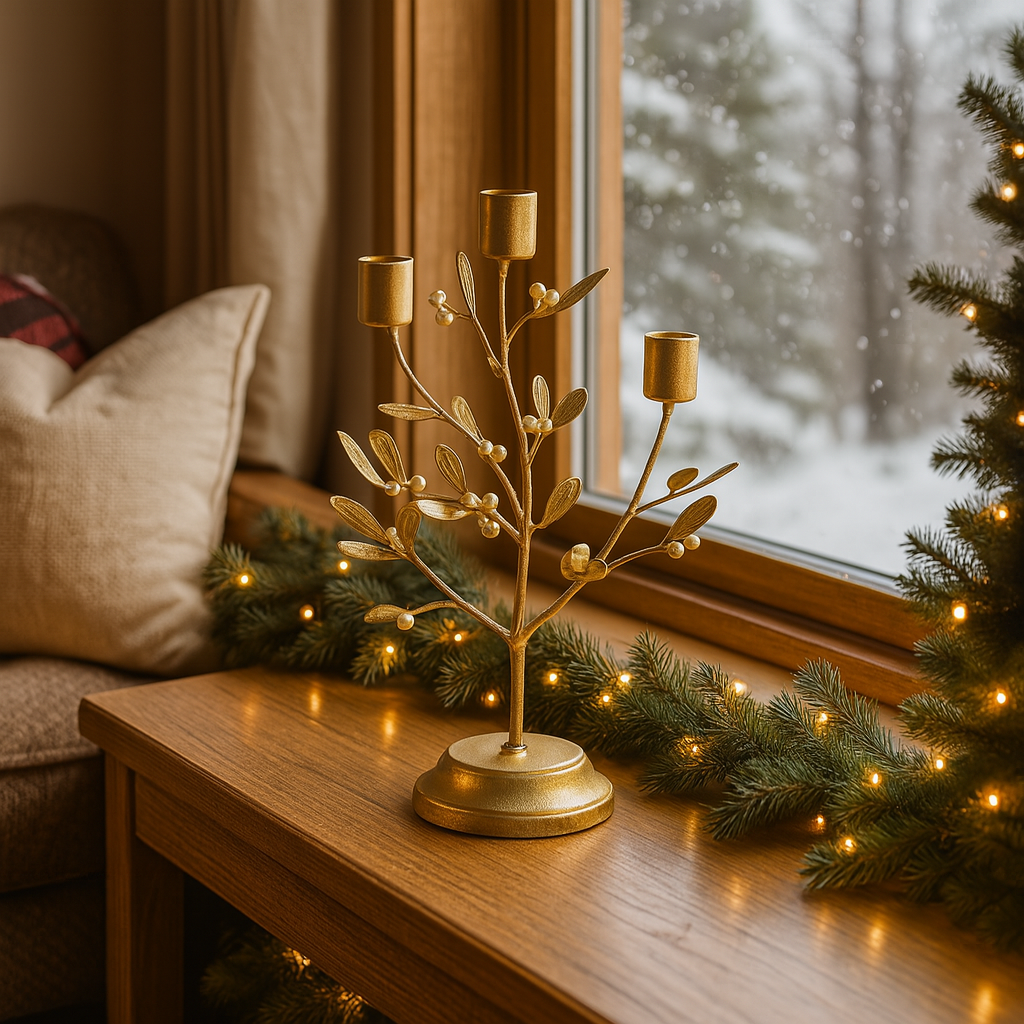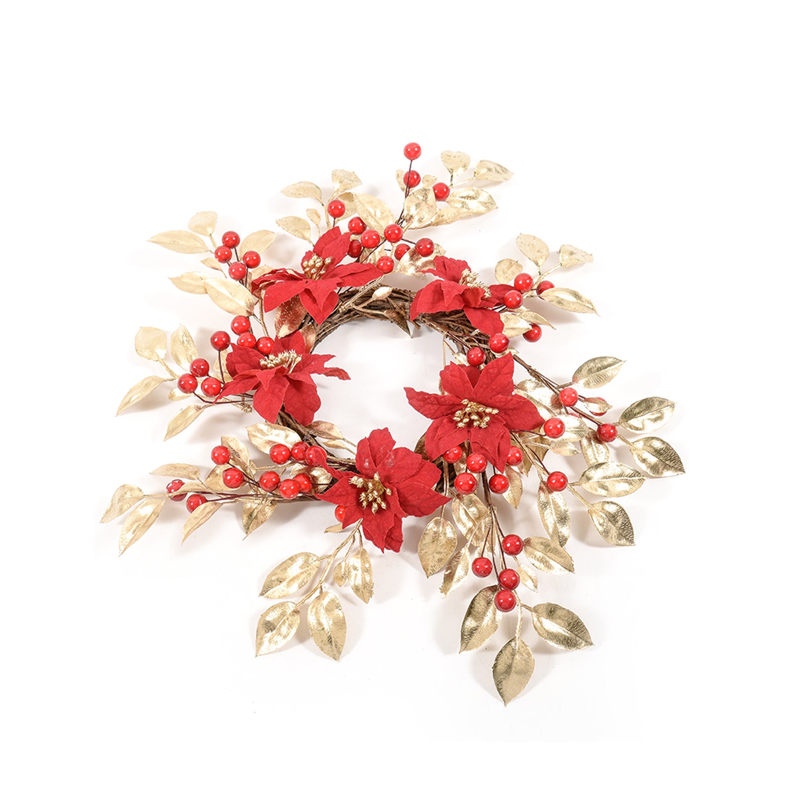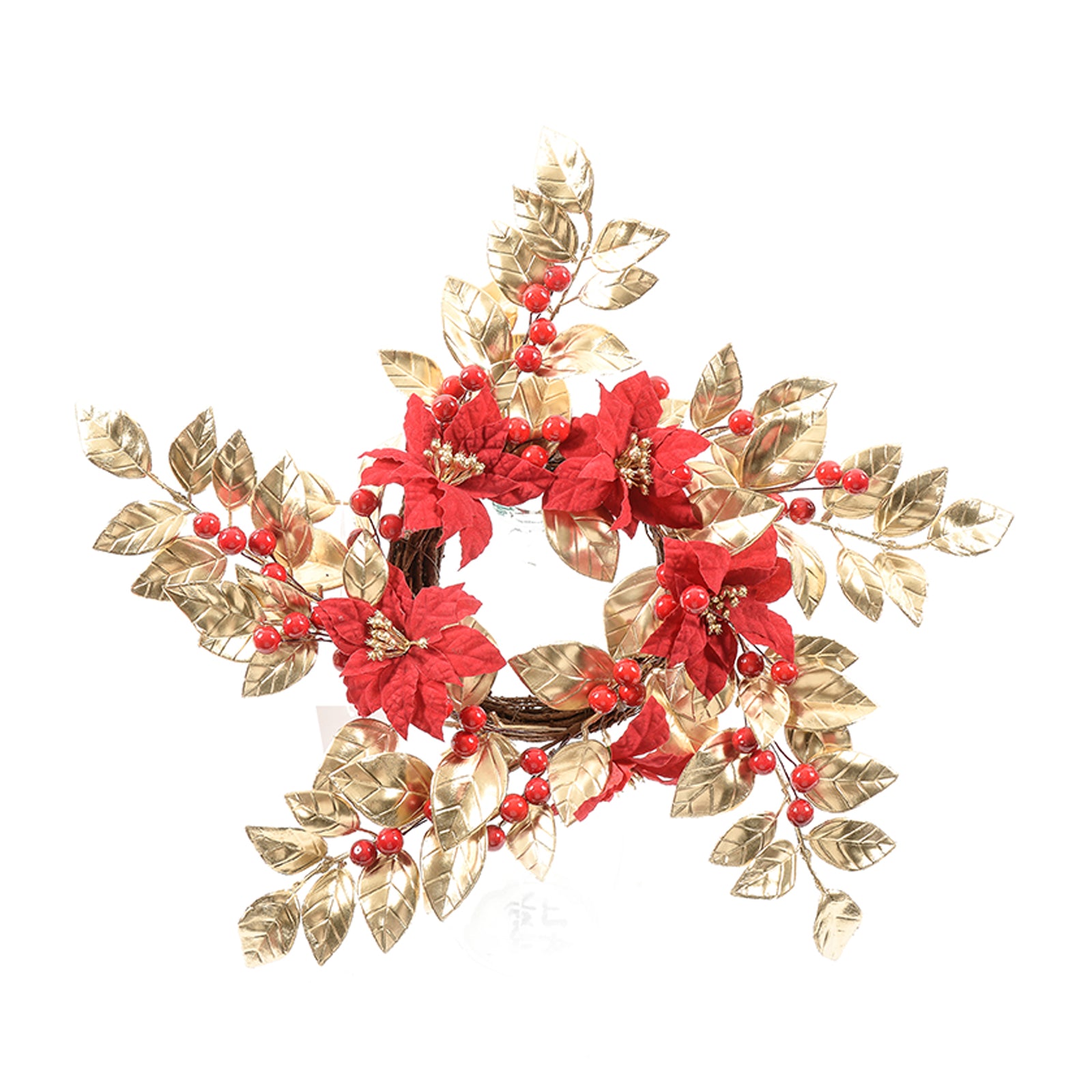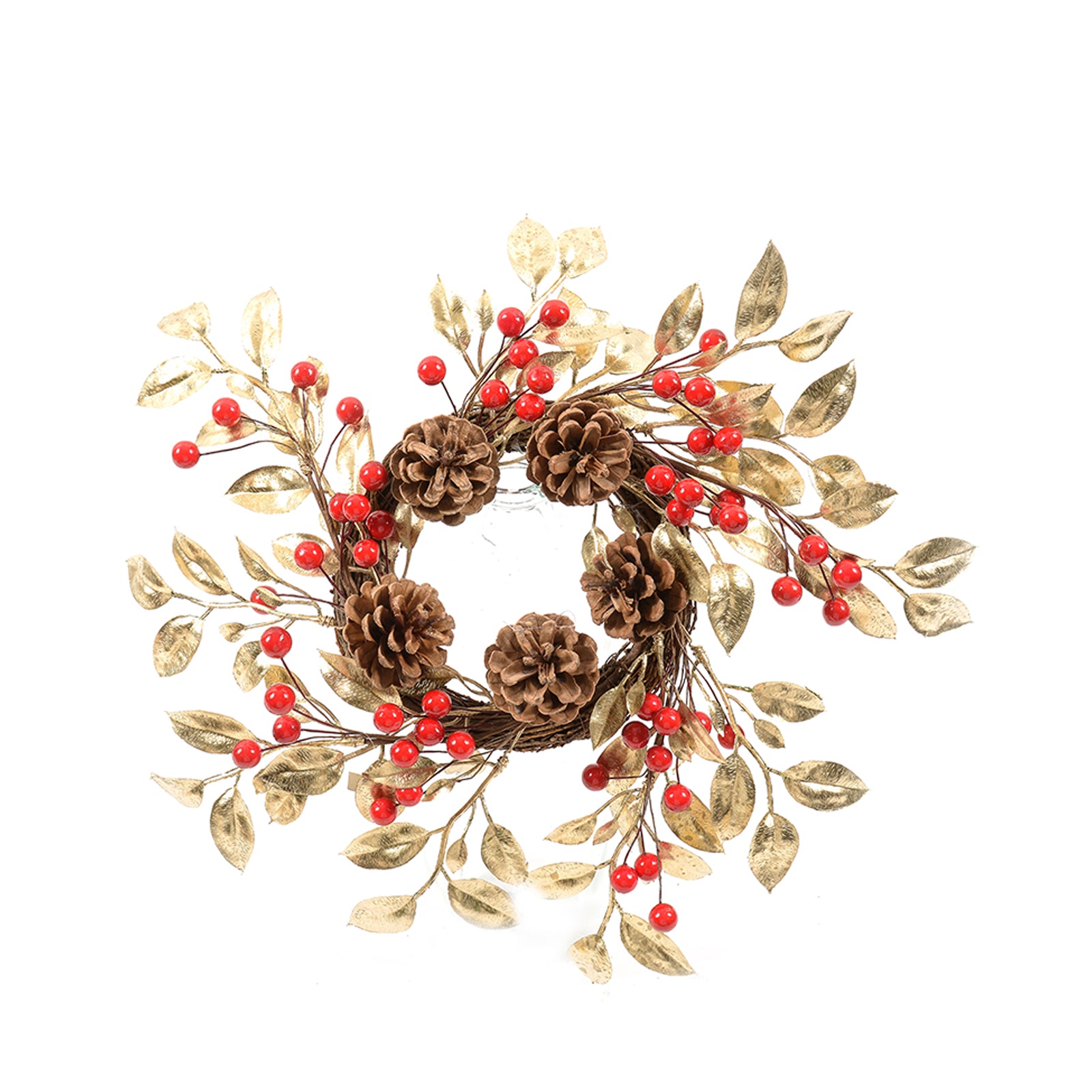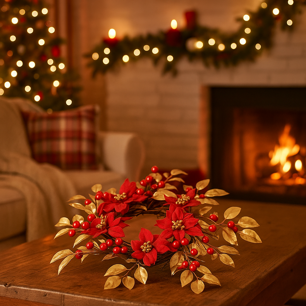 Un centrotavola raffinato che unisce la luminosità dell’oro al calore delle bacche, creando un effetto scenografico perfetto per impreziosire la tavola natalizia o qualsiasi ambiente domestico.