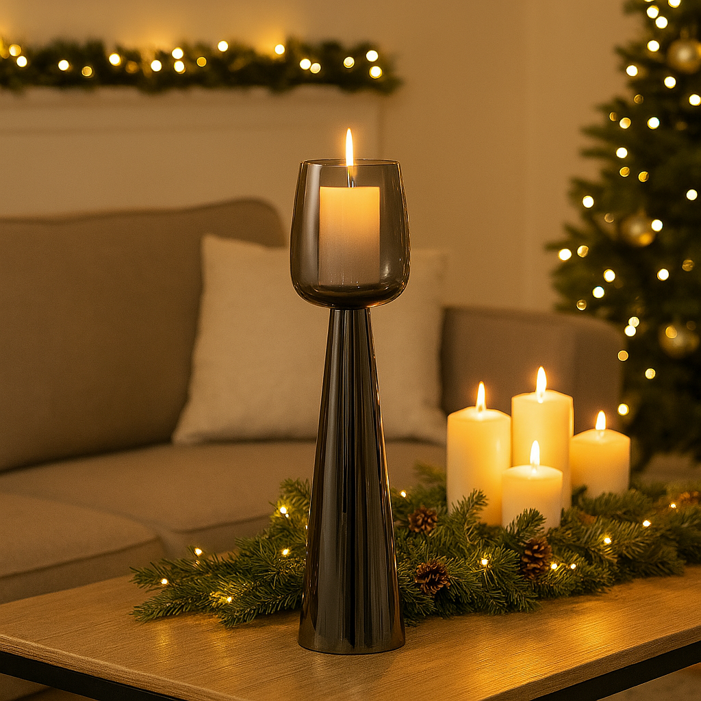 Il colore interno Oro del portacandela lo rende un'ottima scelta per integrarlo in qualsiasi tipo di arredamento. Può essere utilizzato come decorazione per una stanza da pranzo, una stanza da letto o persino un ufficio. La sua dimensione di 21 x 10 x h 29 cm lo rende abbastanza grande da attirare l'attenzione senza essere ingombrante. Inoltre, il portacandela è facile da pulire e mantenere.