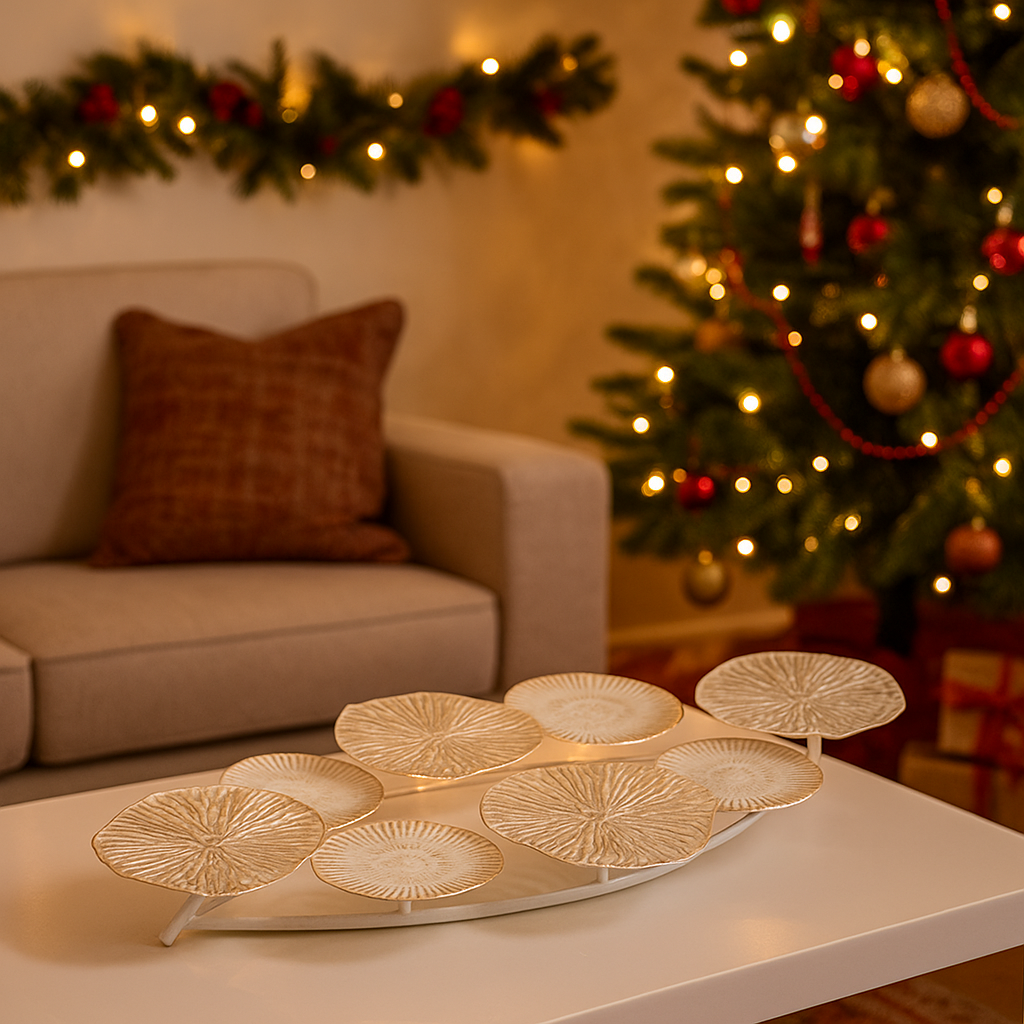 Questo prodotto è realizzato in metallo resistente e ha una forma elegante e raffinata, ideale per essere posizionato come centrotavola su una tavola imbandita durante le festività natalizie.