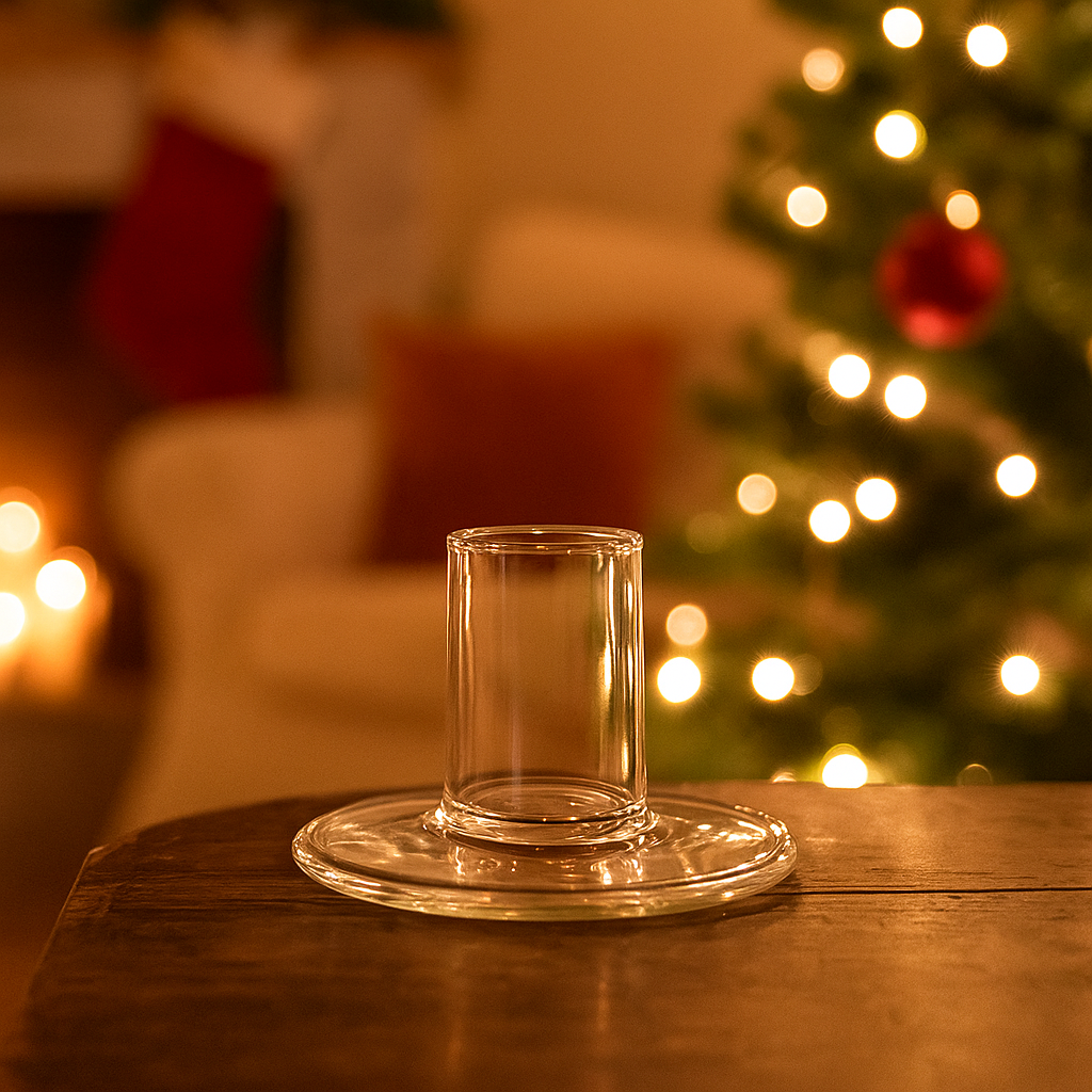 Portacandela in Vetro Trasparente per Decorazioni Natalizie per Interni e per Esterni h 5 cm