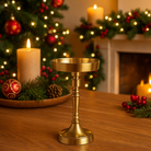 Questo portacandele in alluminio riciclato con finitura dorata non solo aggiunge un tocco di classe al tuo arredamento natalizio, ma rappresenta anche una scelta responsabile per l'ambiente.