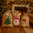 Realizzato in juta, un materiale naturale resistente e dal caratteristico aspetto tessile grezzo, questo sacco è decorato con simboli tradizionali del Natale come stelle, alberi, renne o Babbo Natale.