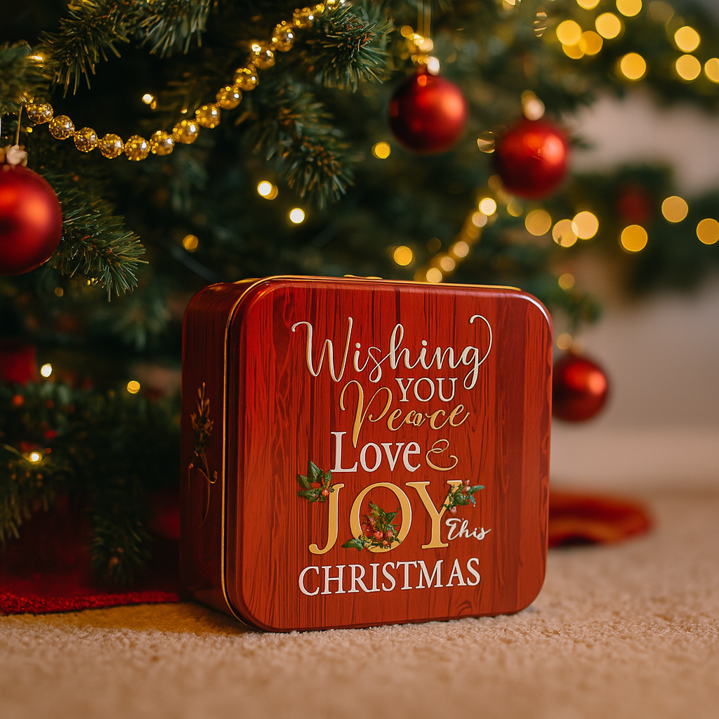 All’interno, la lamiera liscia e leggermente lucida accoglie con eleganza biscotti fatti in casa, cioccolatini avvolti in nastri dorati o piccoli oggetti di valore affettivo come fotografie e biglietti d’auguri.