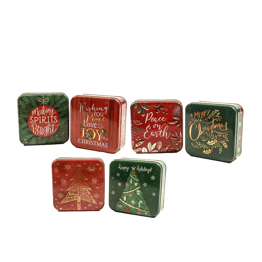 Scatola in latta decorativa con coperchio per decorazioni natalizie