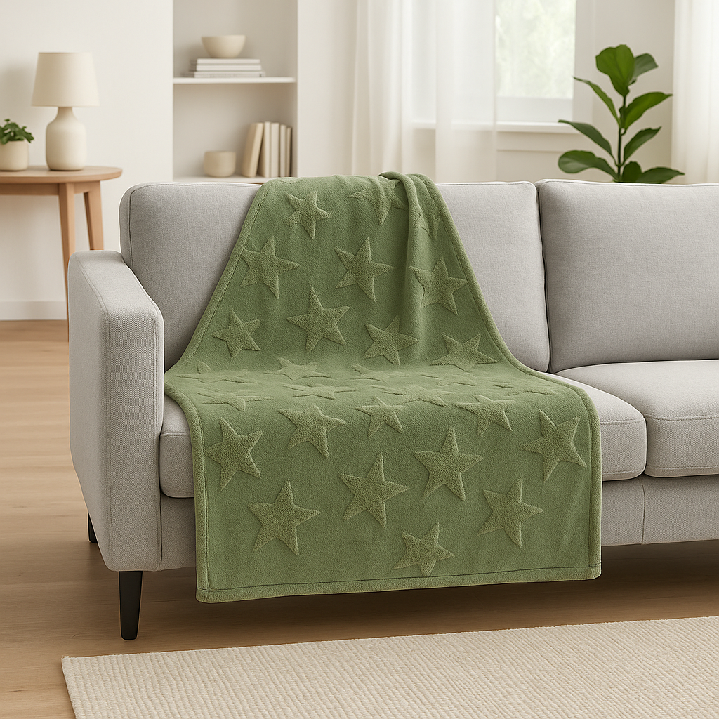 Coperta plaid natalizio colore verde con stelle per letto e divano da 170 x 130 cm