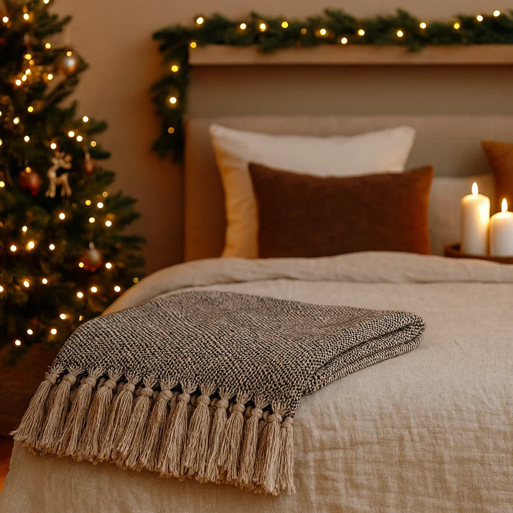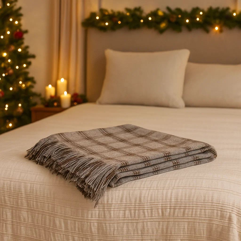 Coperta natalizia "Rayra" naturale marrone 50% cotone e 50% viscosa, 130 x 170 cm