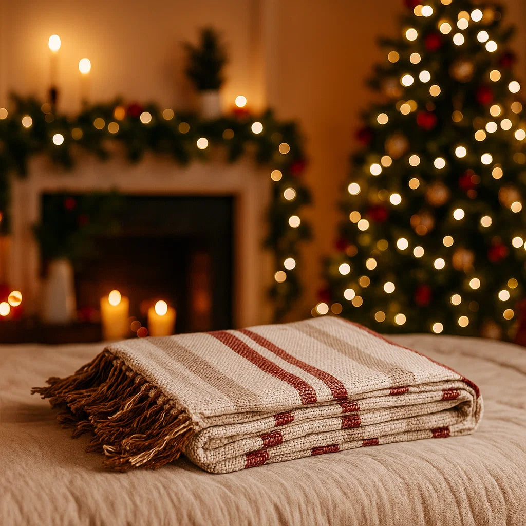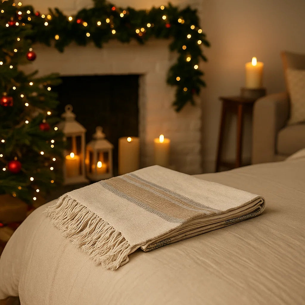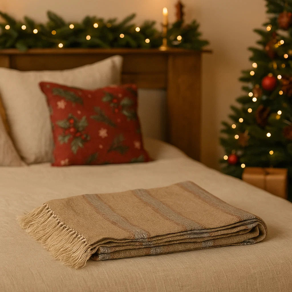 Coperta natalizia "Raipur" naturale, 50% cotone e 50% lino, 130 x 170 cm