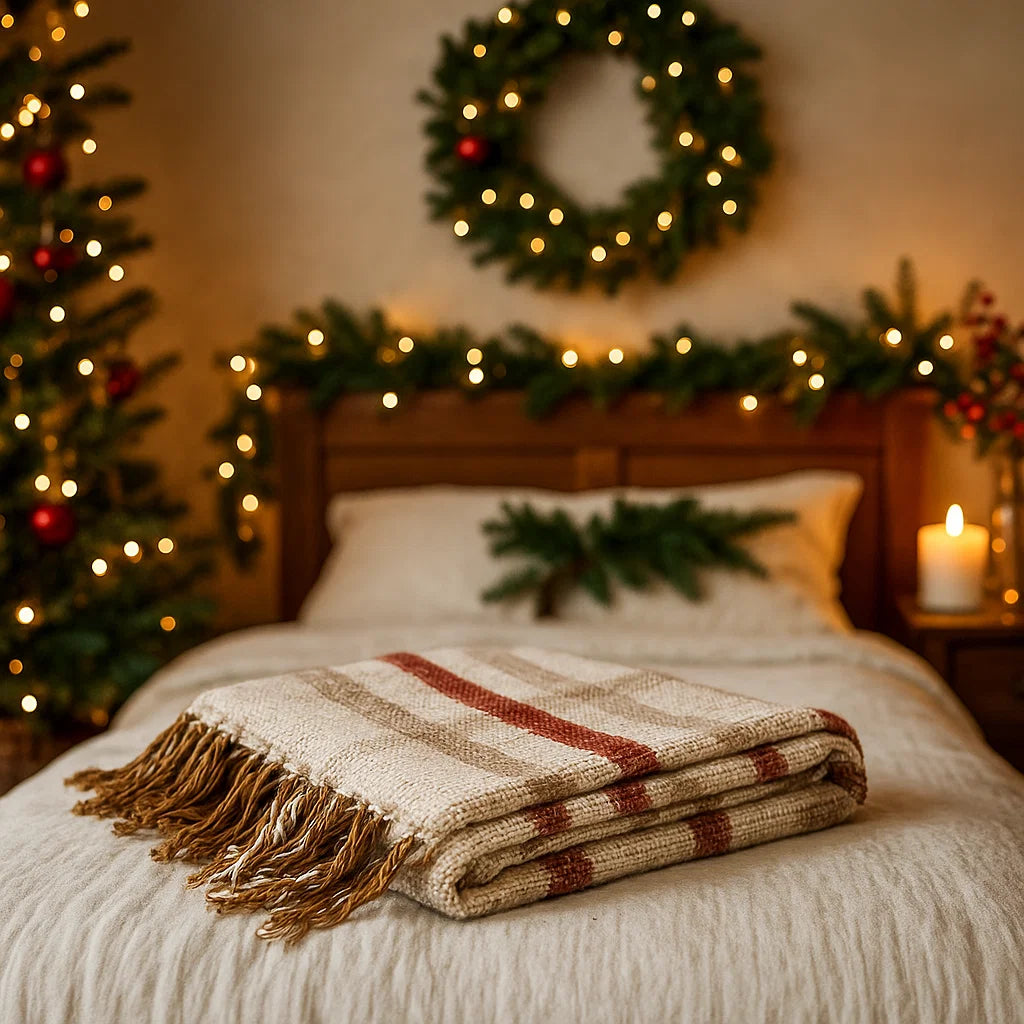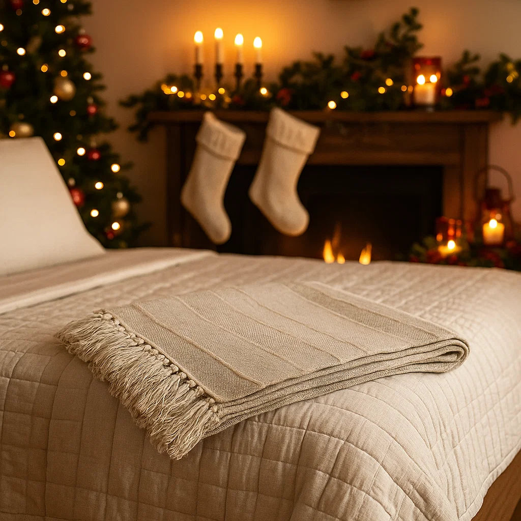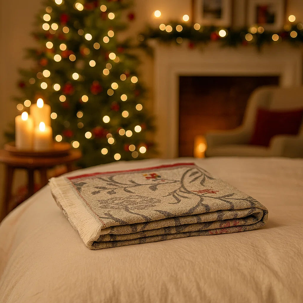 Coperta natalizia "Raipur" naturale, 50% cotone e 50% lino, 130 x 170 cm