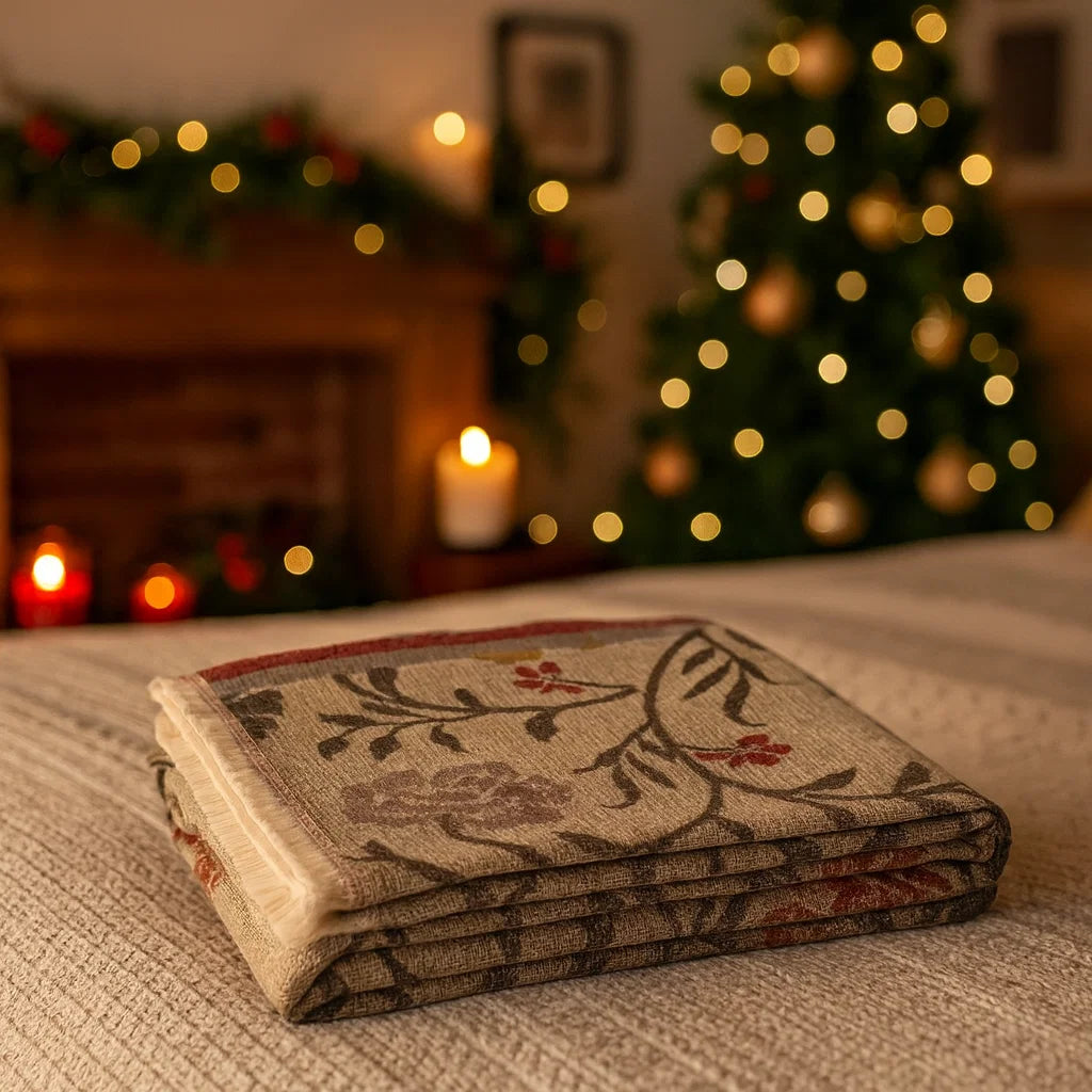 Coperta natalizia "Priscilla" Beige con motivo floreale, 130 x 170 cm