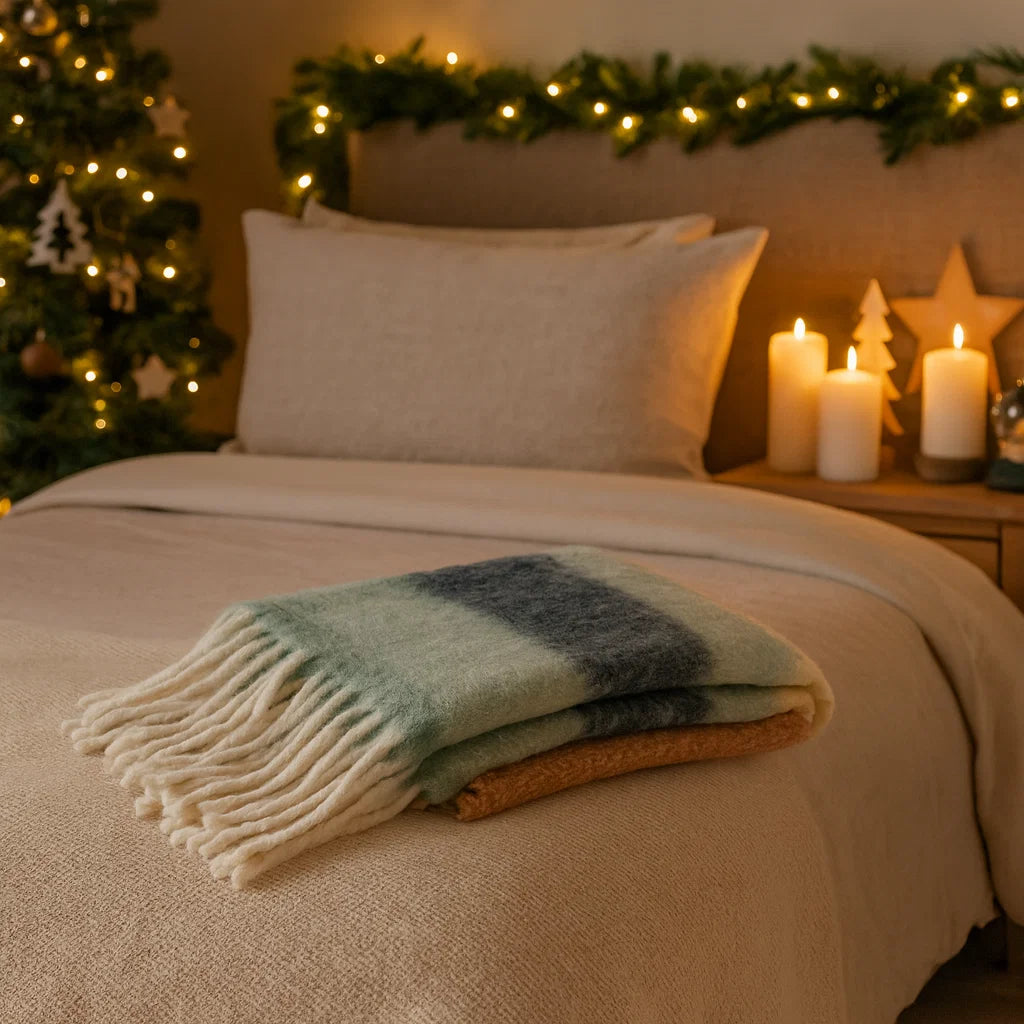 Coperta natalizia "Nayla" a righe con frange, 130 x 170 cm