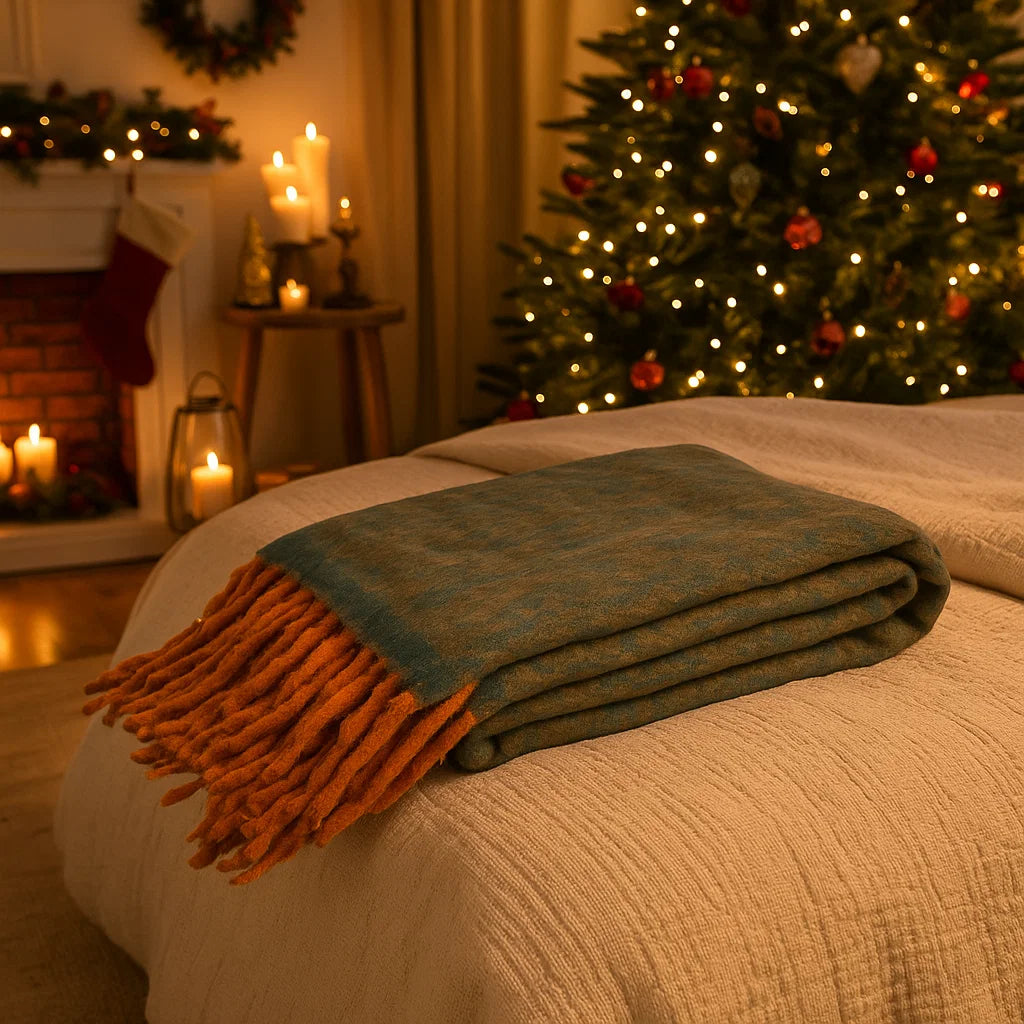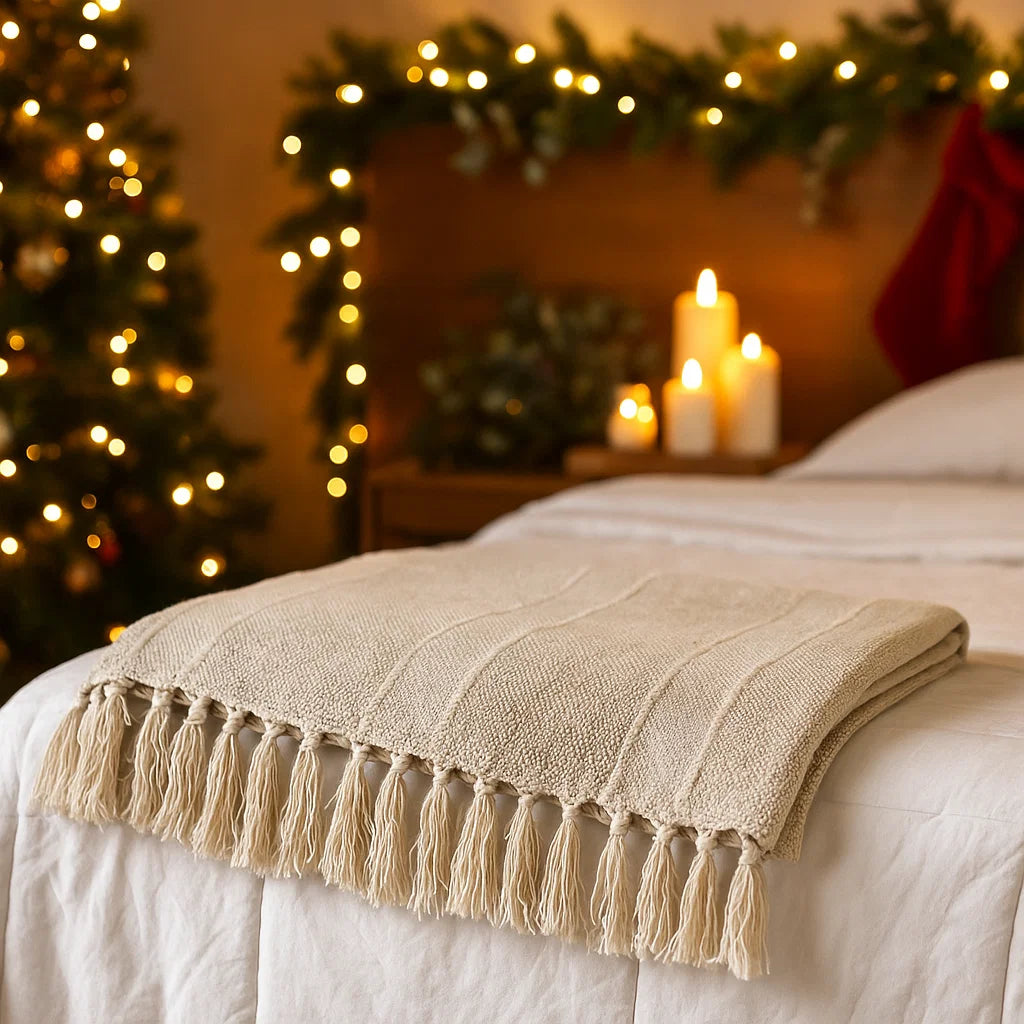 Coperta natalizia "Nylan" con frange, 70% cotone, 130 x 170 cm