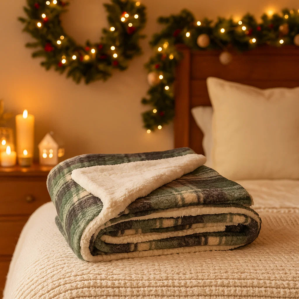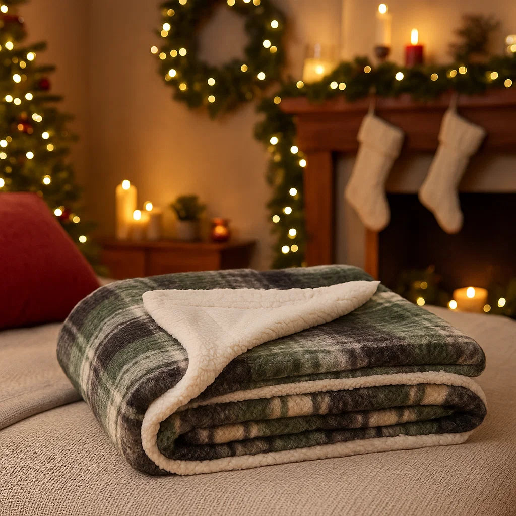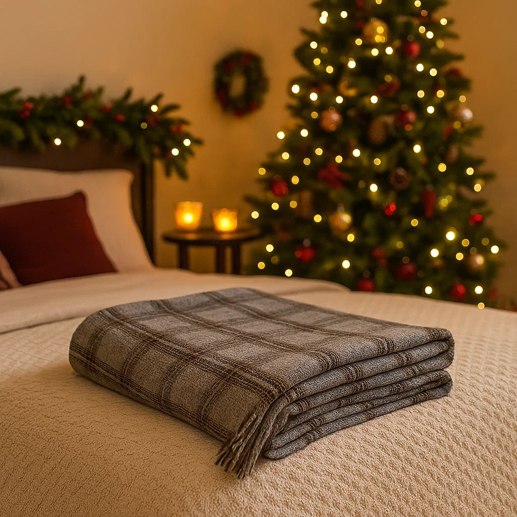 Coperta natalizia in poliestere tartan per decorazioni natalizie