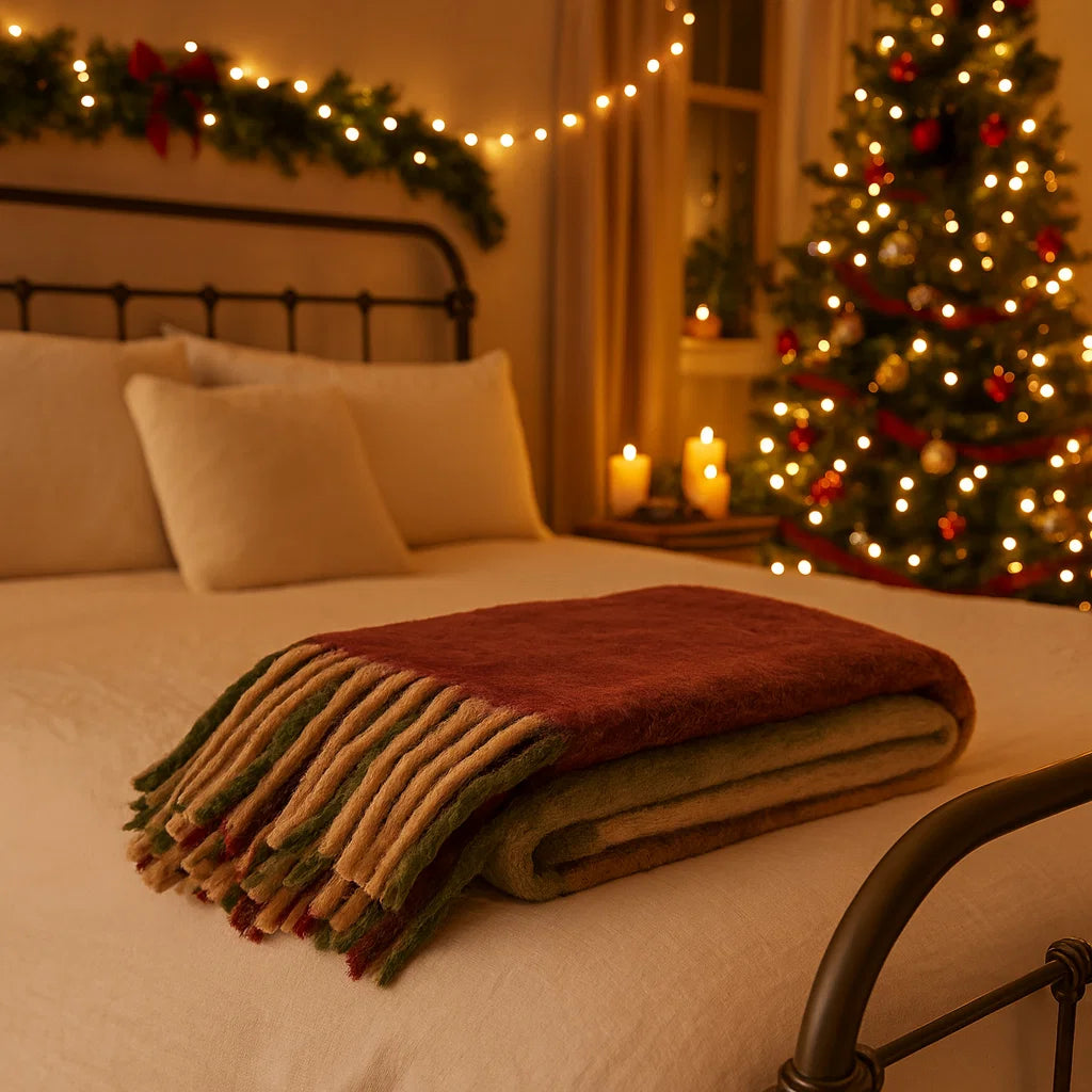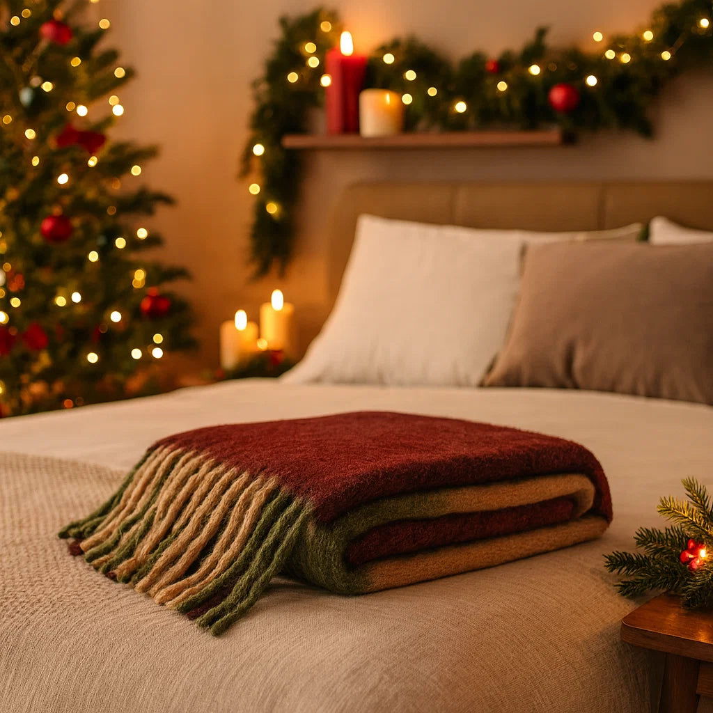 La coperta natalizia “Anouk” a quadri con frange è un invito al relax e al calore delle feste.