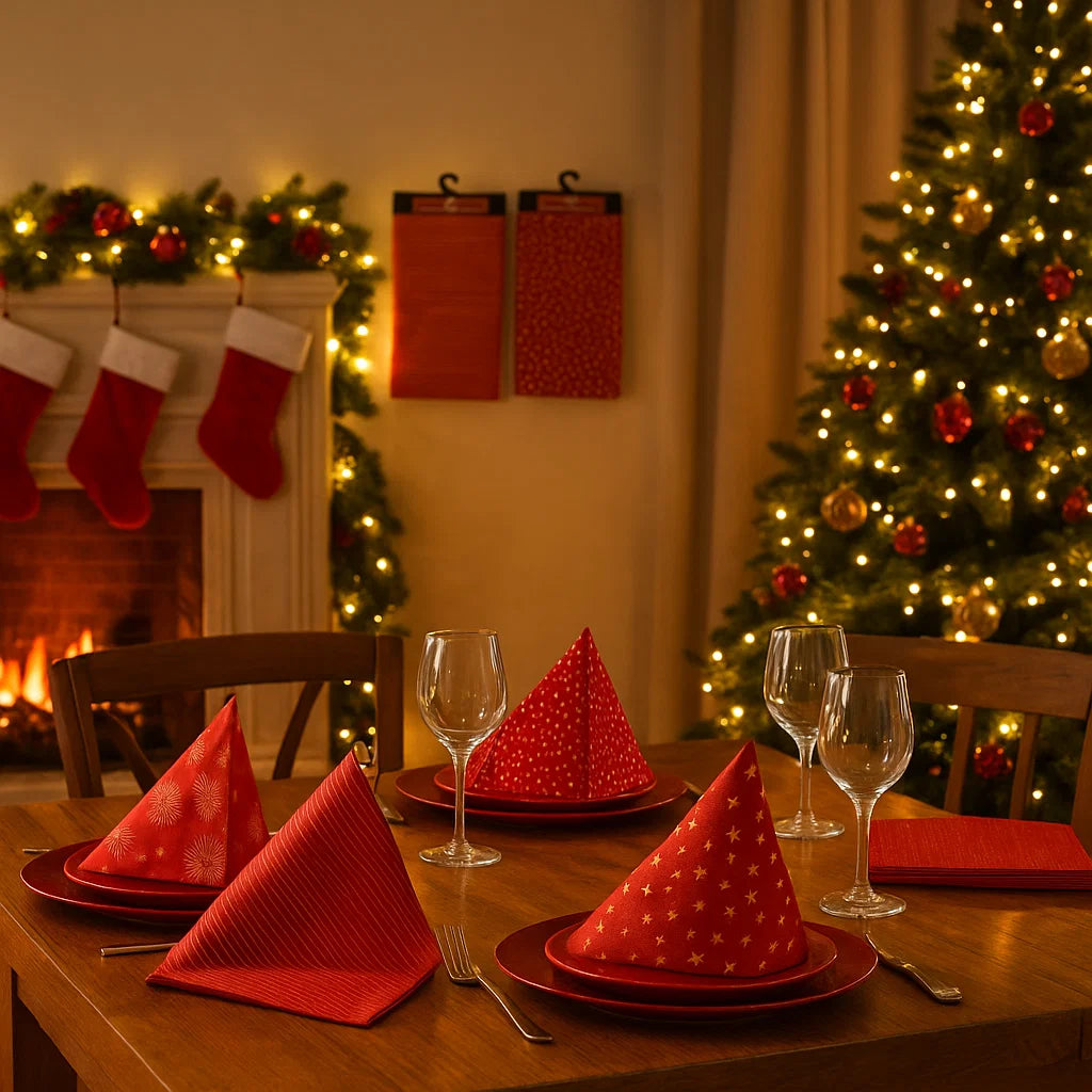 Rendi la tua tavola ancora più speciale con i tovaglioli natalizi “Tartan”. Il loro elegante motivo scozzese in rosso, verde e oro dona subito un’atmosfera calda e festosa, perfetta per cene e pranzi in famiglia durante le festività. Realizzati in morbida carta di qualità, uniscono praticità e stile, permettendoti di apparecchiare con gusto senza rinunciare alla comodità. Con la loro presenza raffinata e tradizionale, saranno il dettaglio che completa l’allestimento della tua tavola natalizia e conquisteranno i tuoi ospiti.