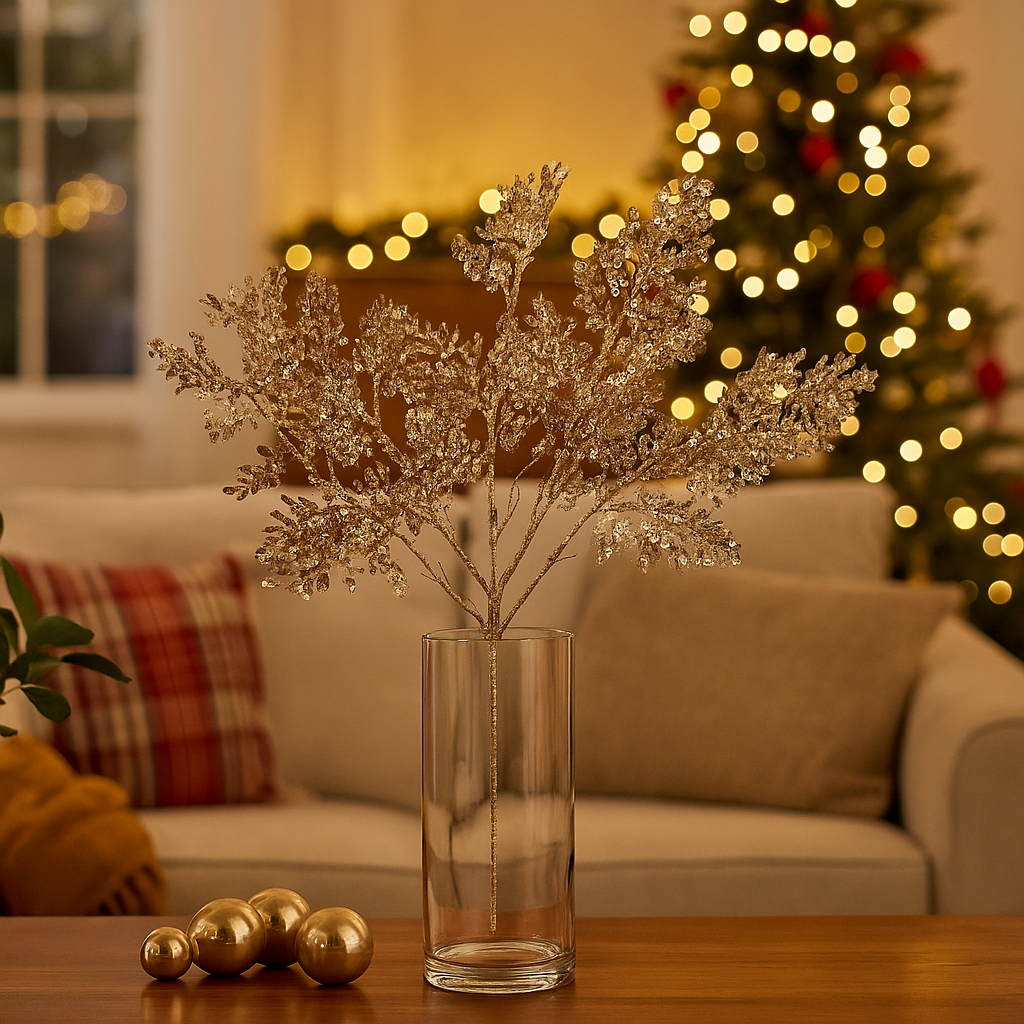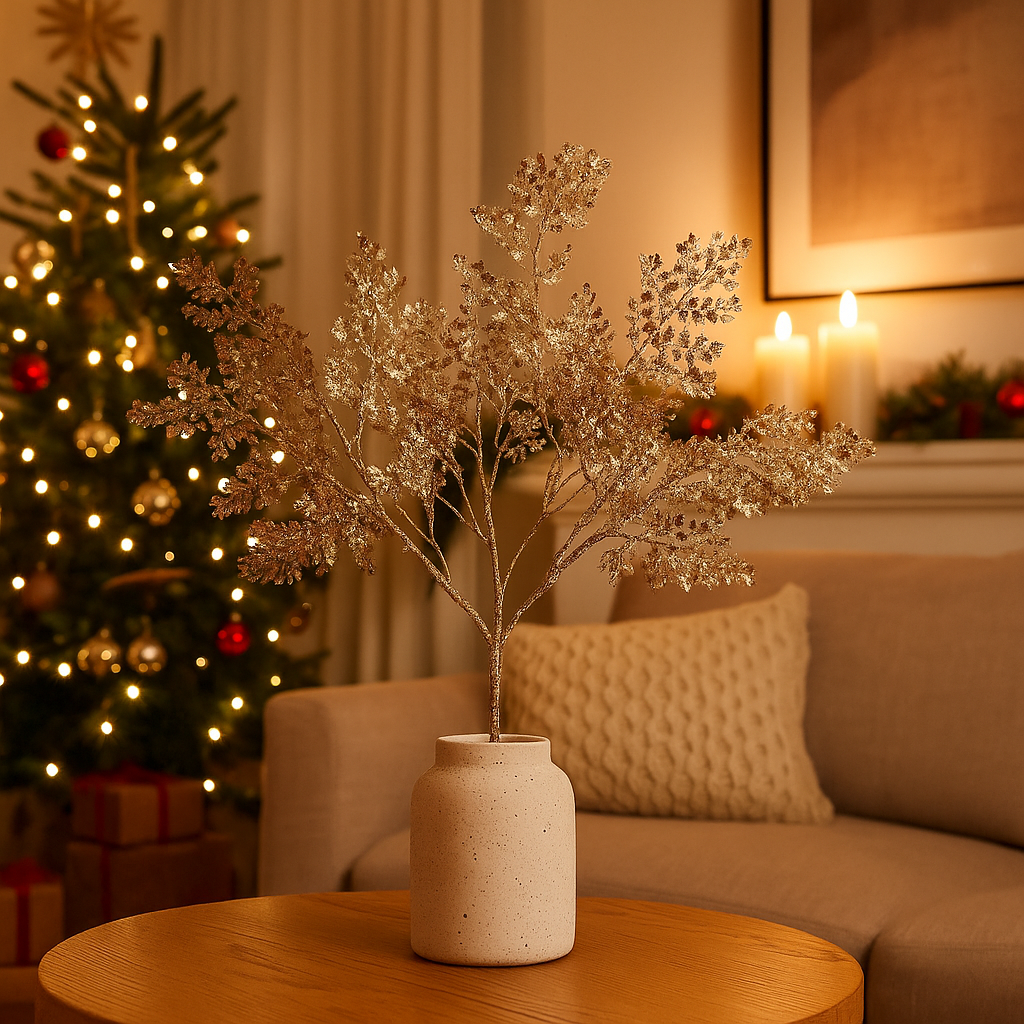 Felce con Foglie glitterate Oro decorazione natalizia per albero di natale h 46 cm