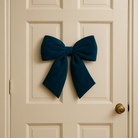 Fiocco imbottito in velluto Blu decorazione natalizia per albero e ghirlanda dietro porta