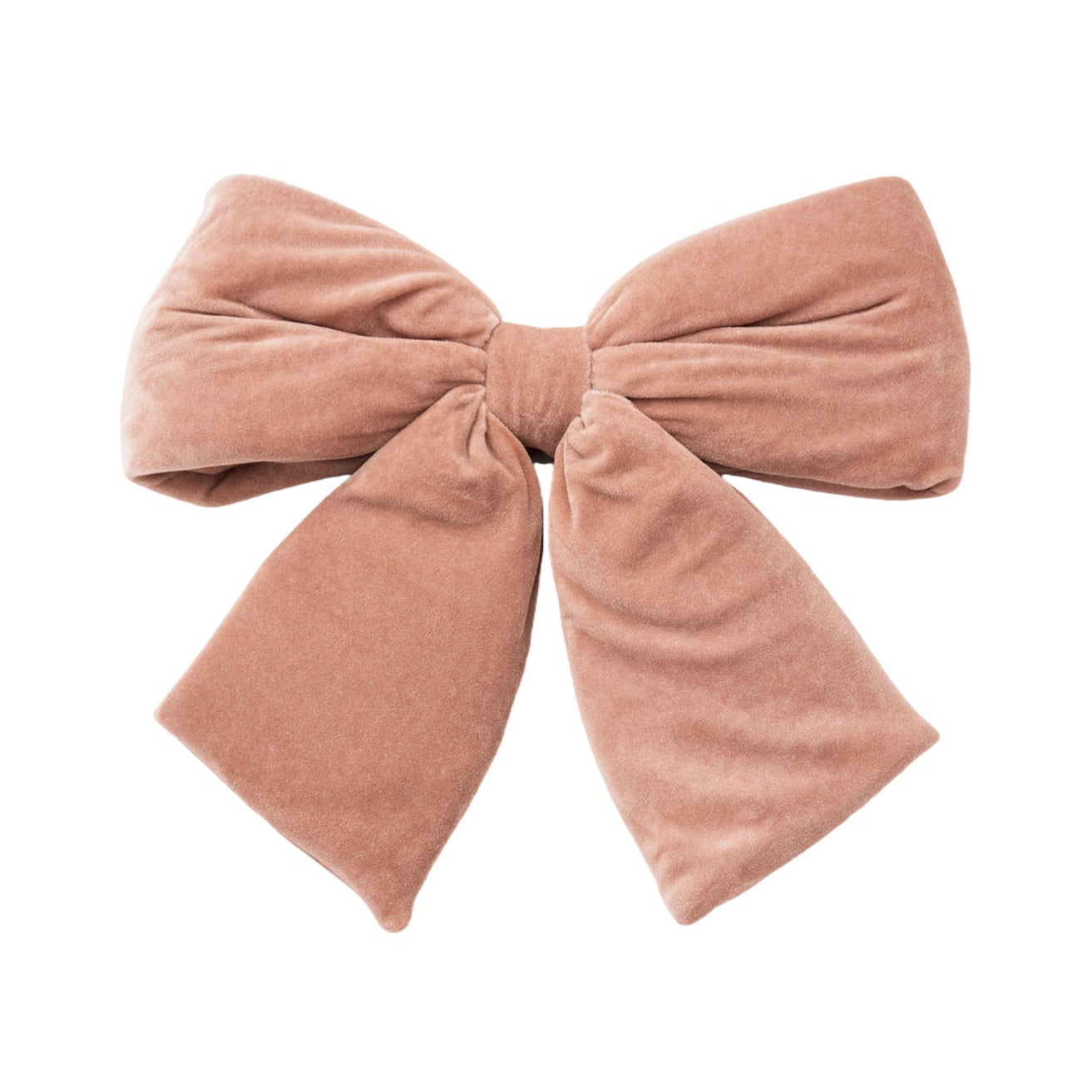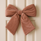 Fiocco imbottito in velluto Rosa Antico decorazione natalizia per albero e ghirlanda dietro porta