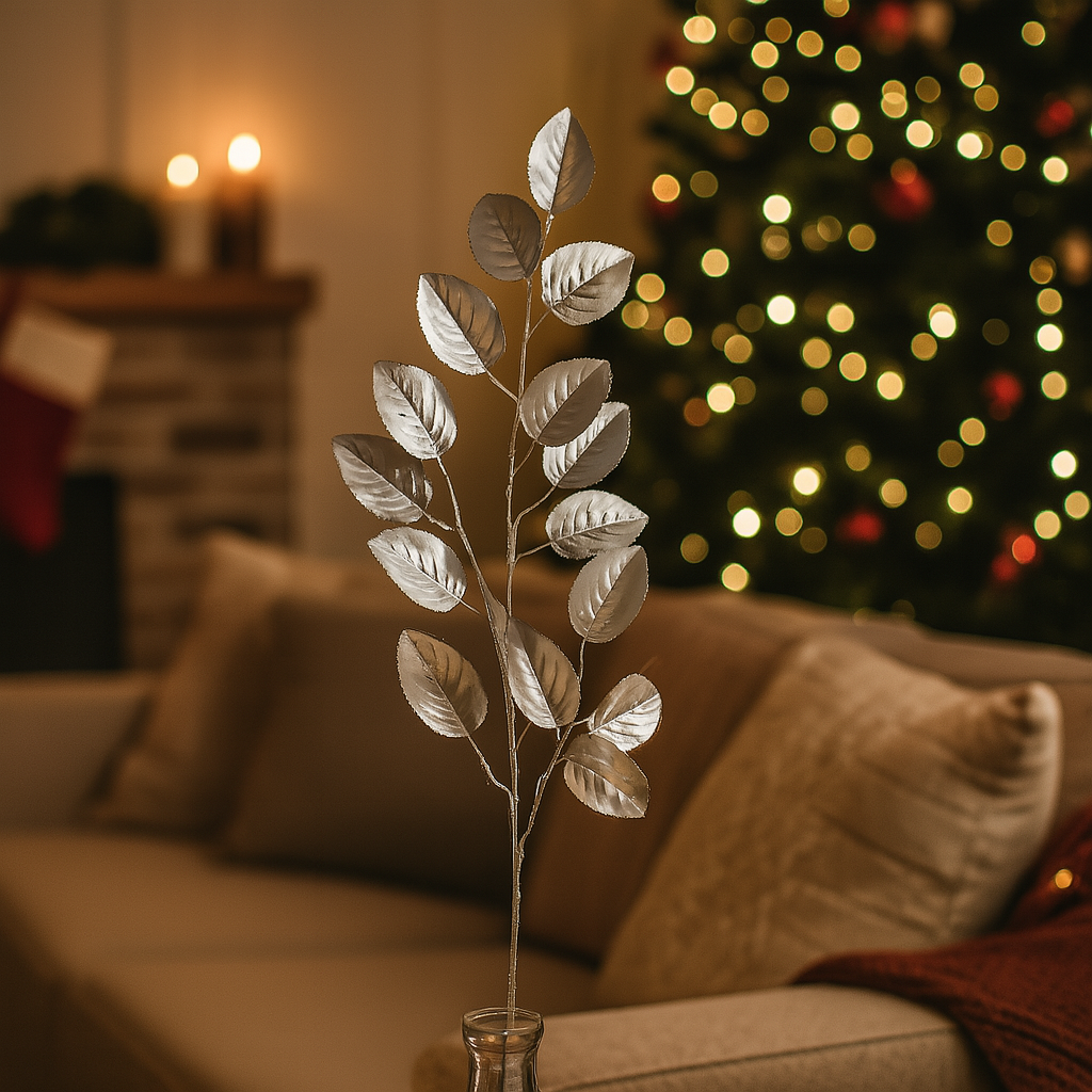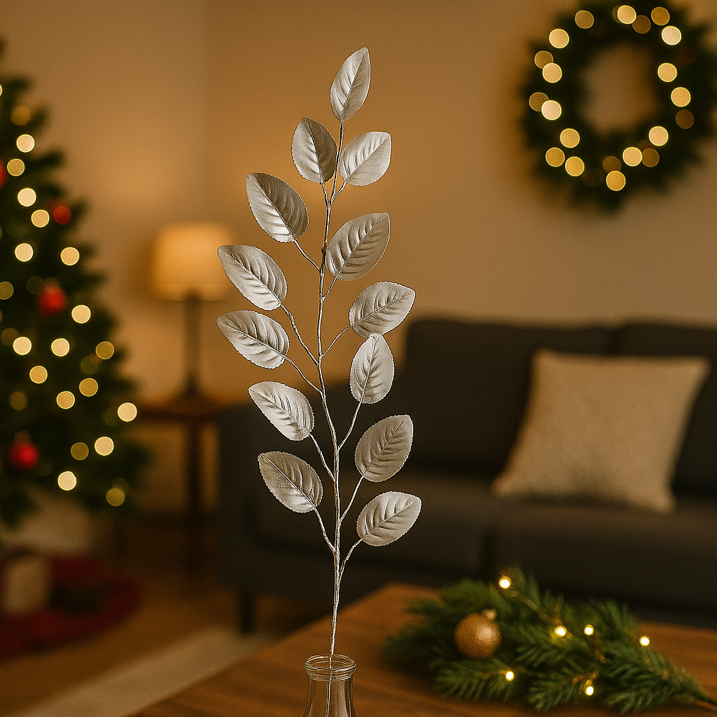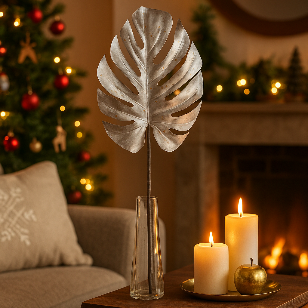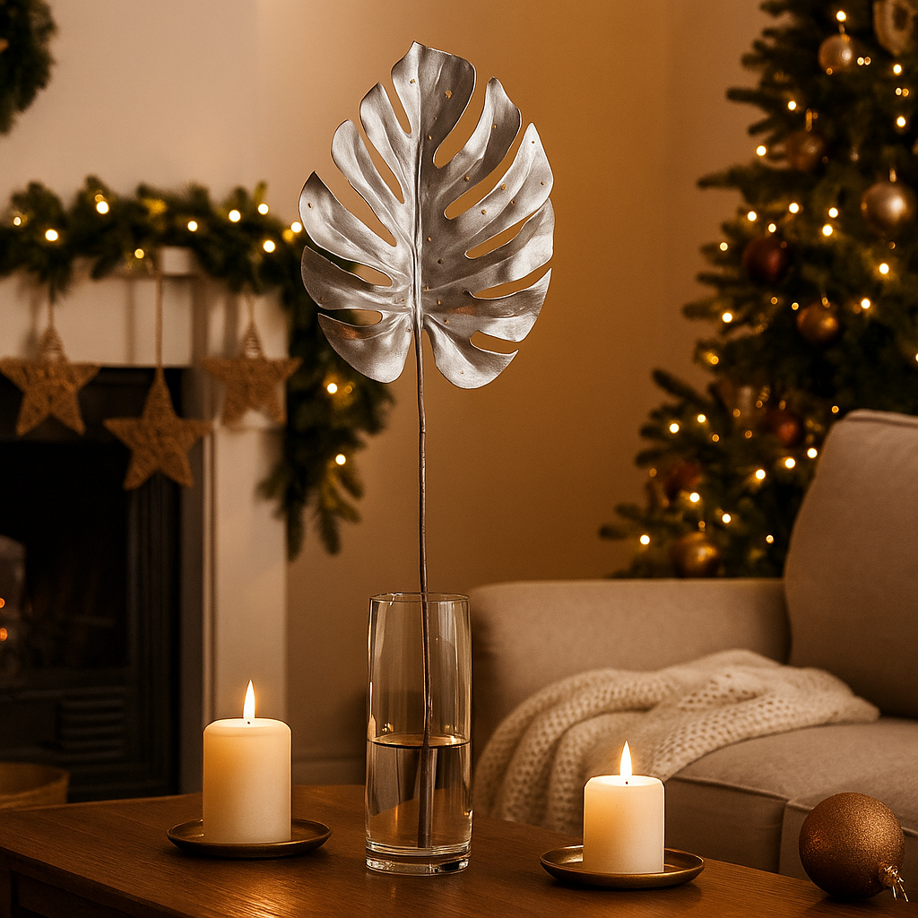 Ramo Filodendro "Stephany" per Decorazioni Natalizie Argento h 70 cm