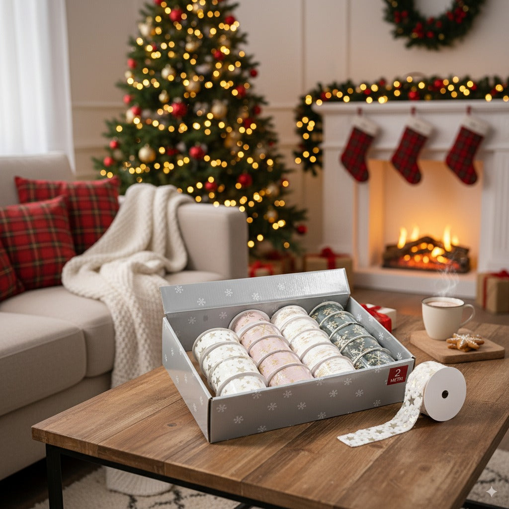 Nastro in tessuto natalizio per decorazioni e confezioni decorato oro 2 mt