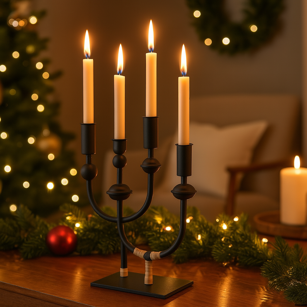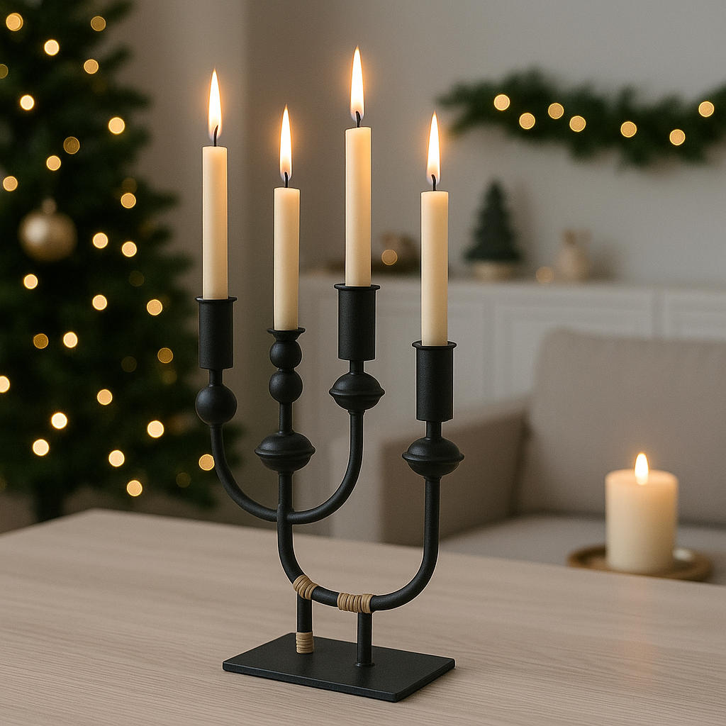 Portacandela Nero con quattro Basi h 36 cm "Candelabro Nero" per Decorazione Natalizie
