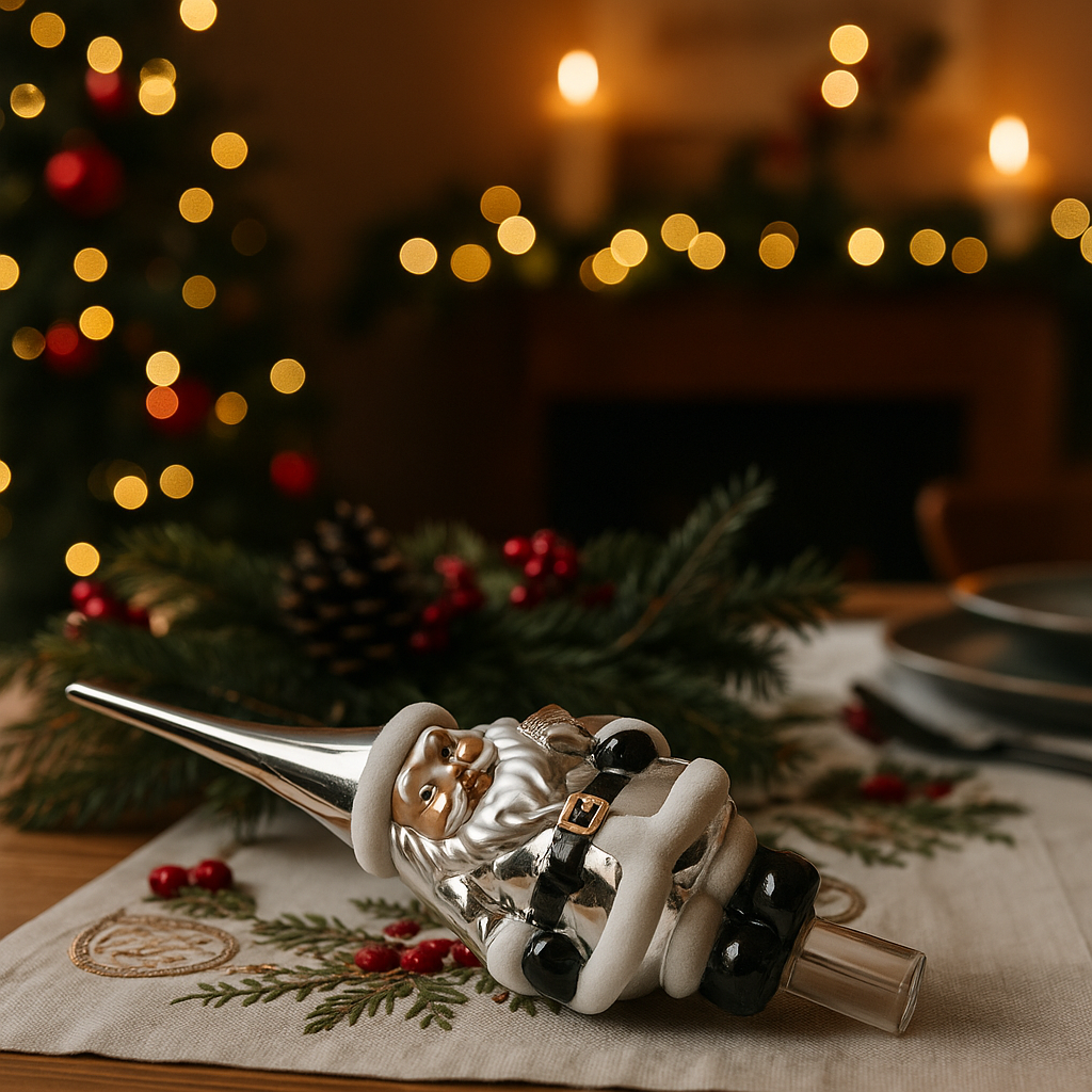 Realizzato in vetro di alta qualità, questo puntale combina la trasparenza e la lucentezza del materiale con un design elegante e festivo. La sua forma classica e affusolata culmina in una punta delicata, ideale per completare con grazia la cima del tuo albero di Natale.
