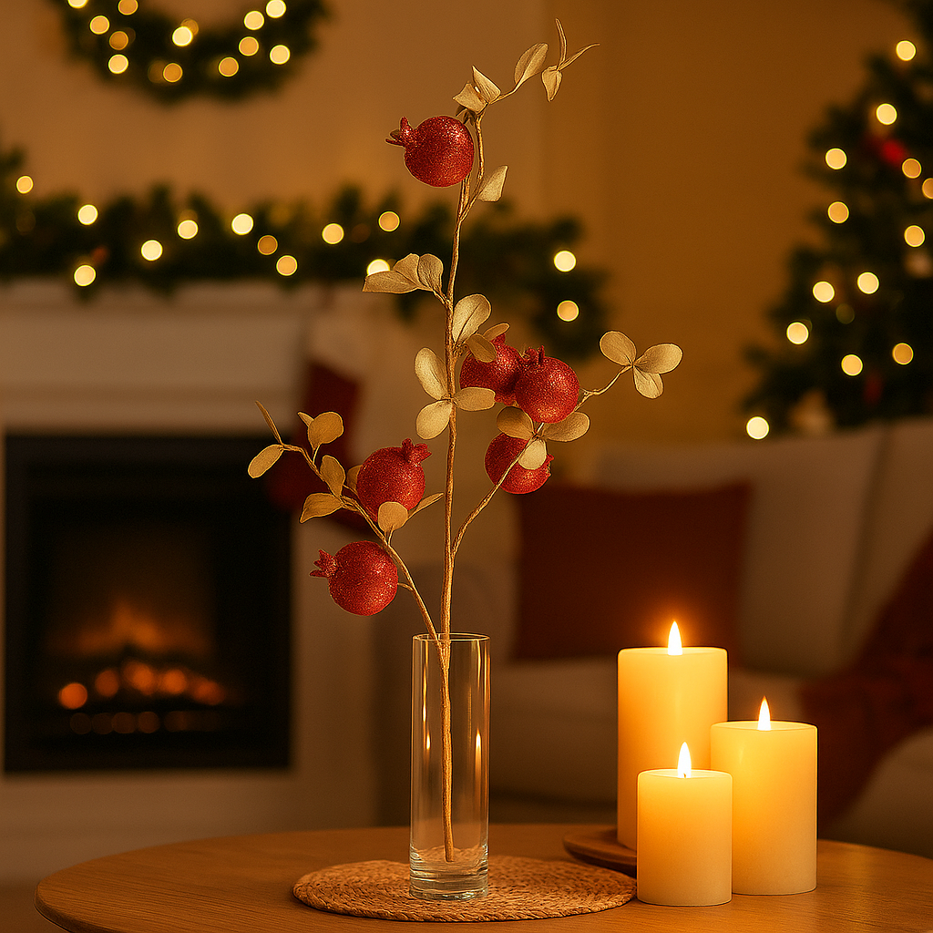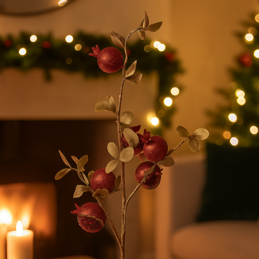 Ramo Artificiale con Melograni – Decorazione Natalizia da 90 cm