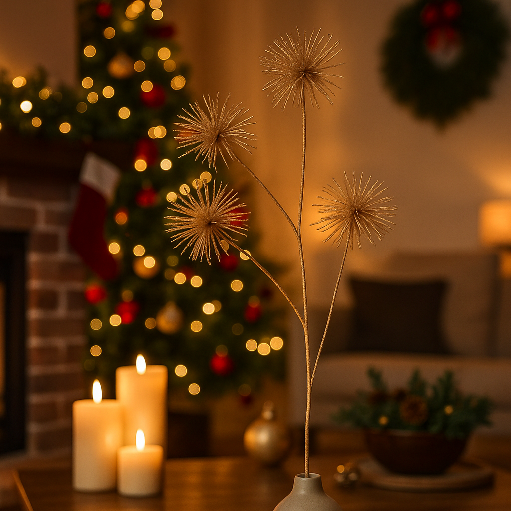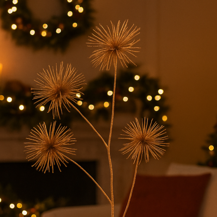 Ramo con fiori oro per decorazioni natalizie e composizioni, da 85 cm
