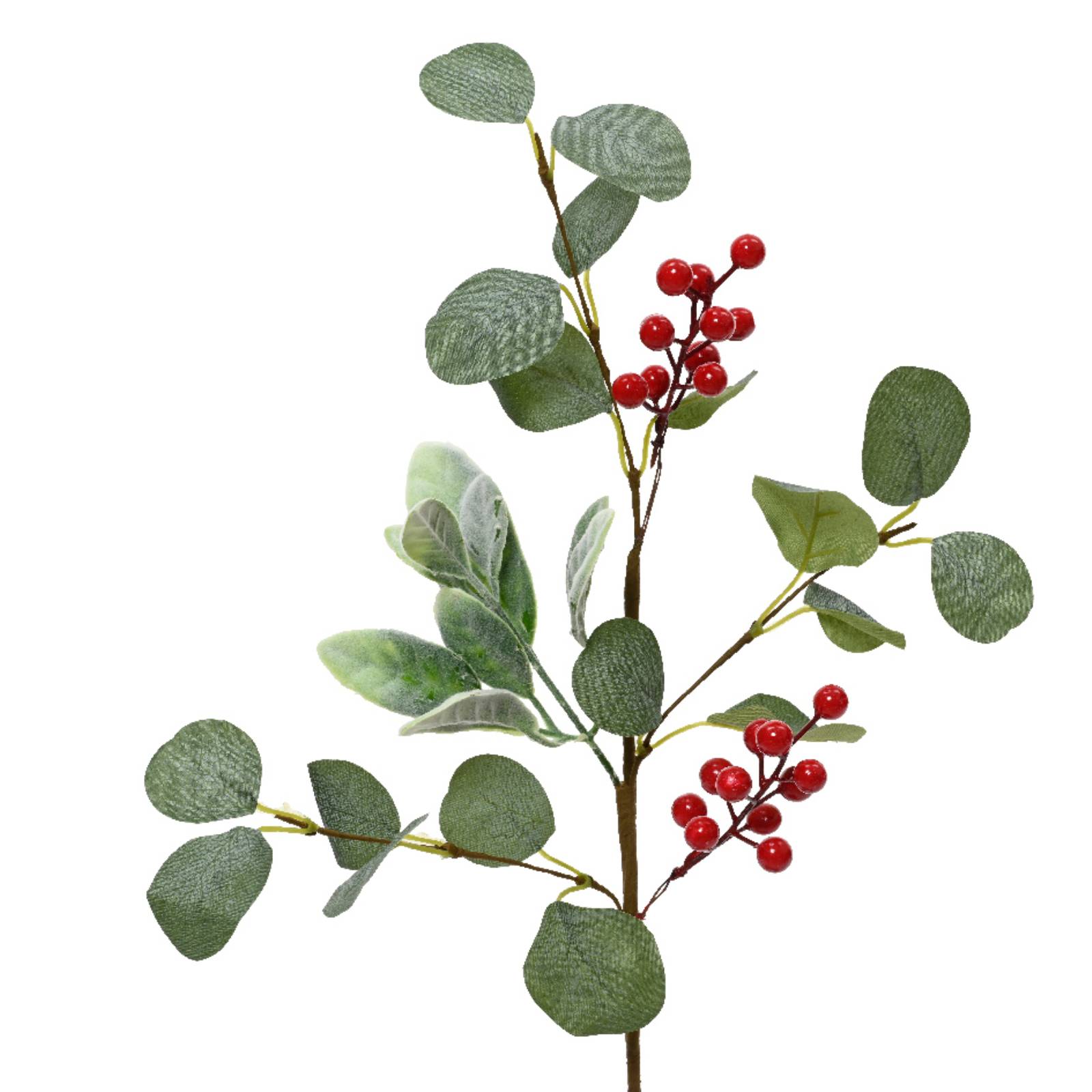 Ramo con foglie e bacche rosse per decorazioni natalizie e composizioni, da 50 cm