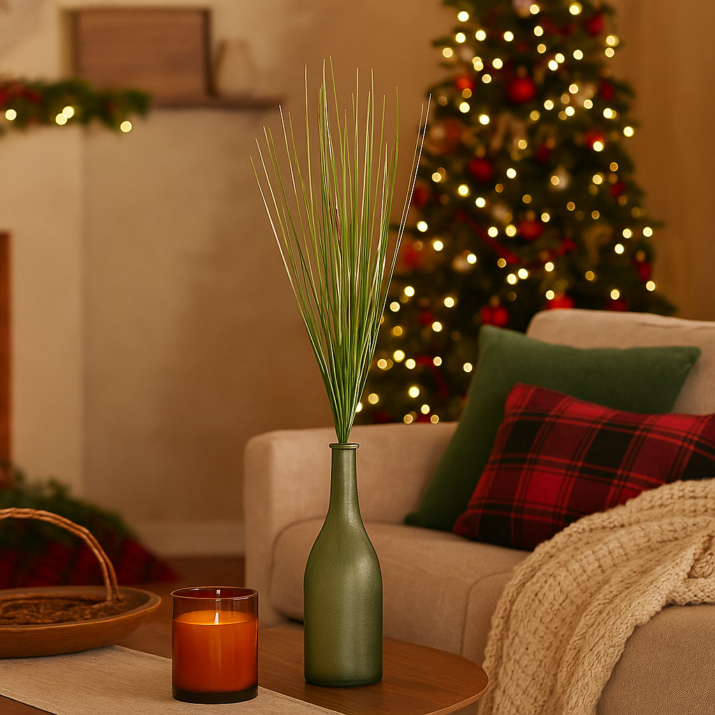 Porta un tocco di verde naturale e stile rustico nei tuoi ambienti con questo ramo artificiale di festuca verde, arricchito da sottili fili decorativi che ne esaltano la leggerezza e il movimento. Alto 57 cm, è perfetto per essere utilizzato da solo in un vaso minimal oppure inserito in composizioni floreali, ghirlande, centrotavola o allestimenti stagionali. Il colore verde intenso e la struttura flessibile lo rendono ideale per creare effetti visivi realistici, senza bisogno di manutenzione.