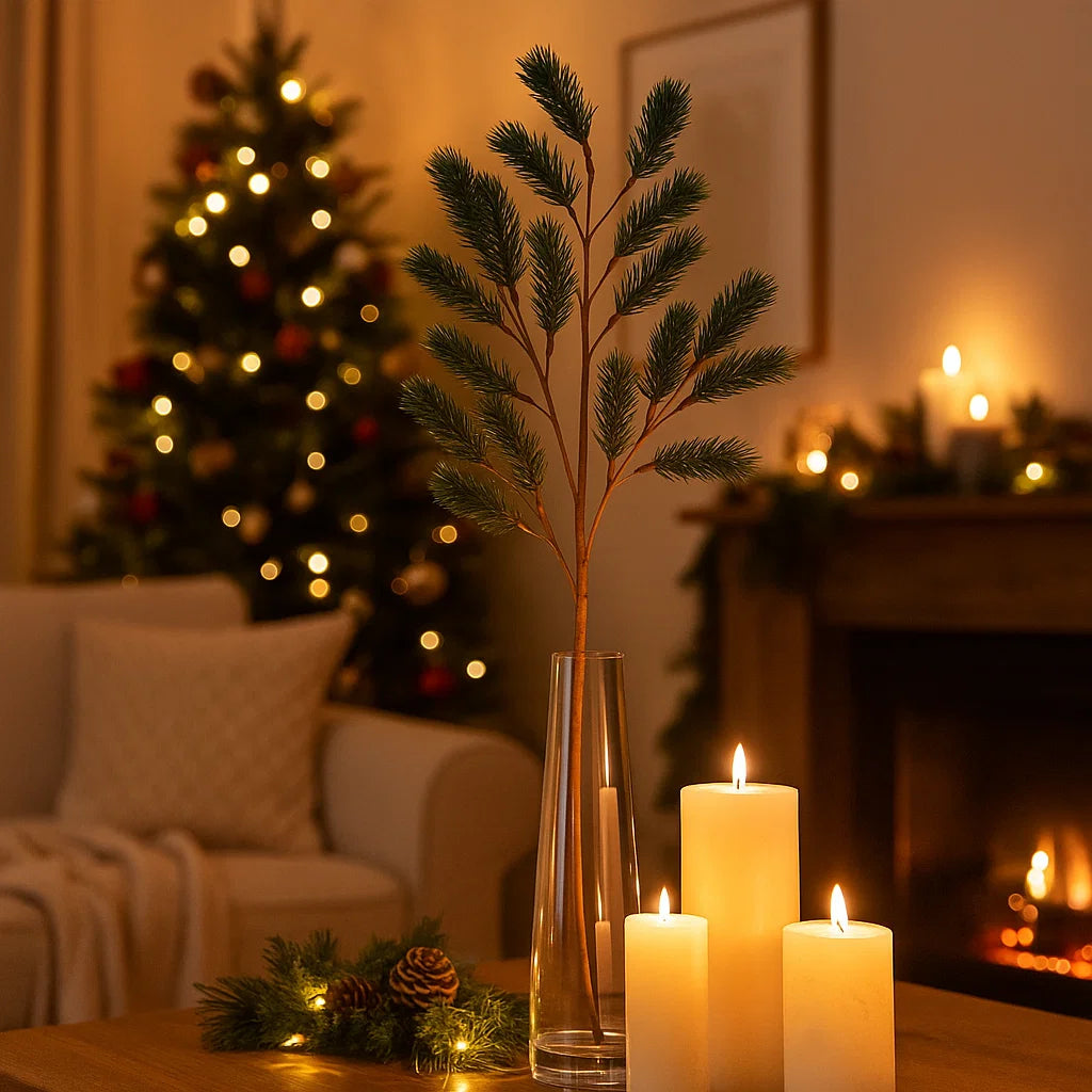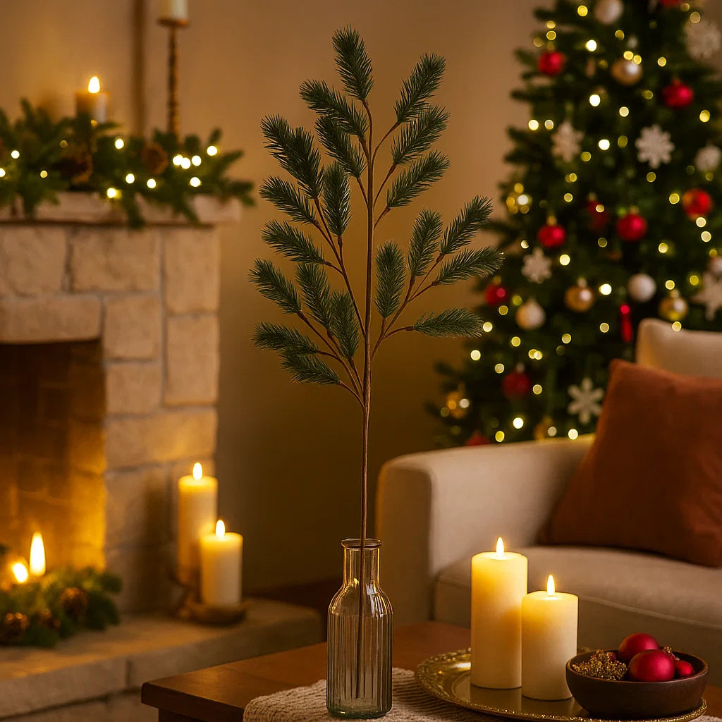 Porta in casa il fascino autentico della natura con il ramo effetto real touch da 65 cm, un elemento decorativo raffinato e versatile, perfetto per arricchire le tue creazioni natalizie.