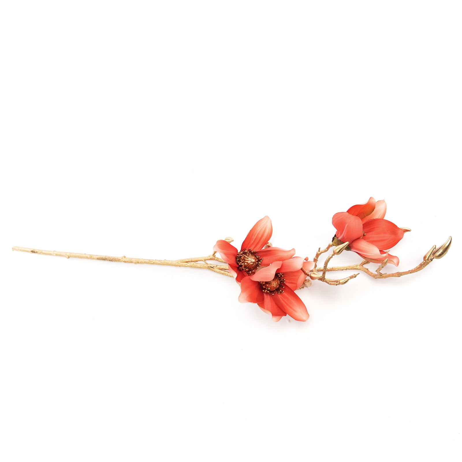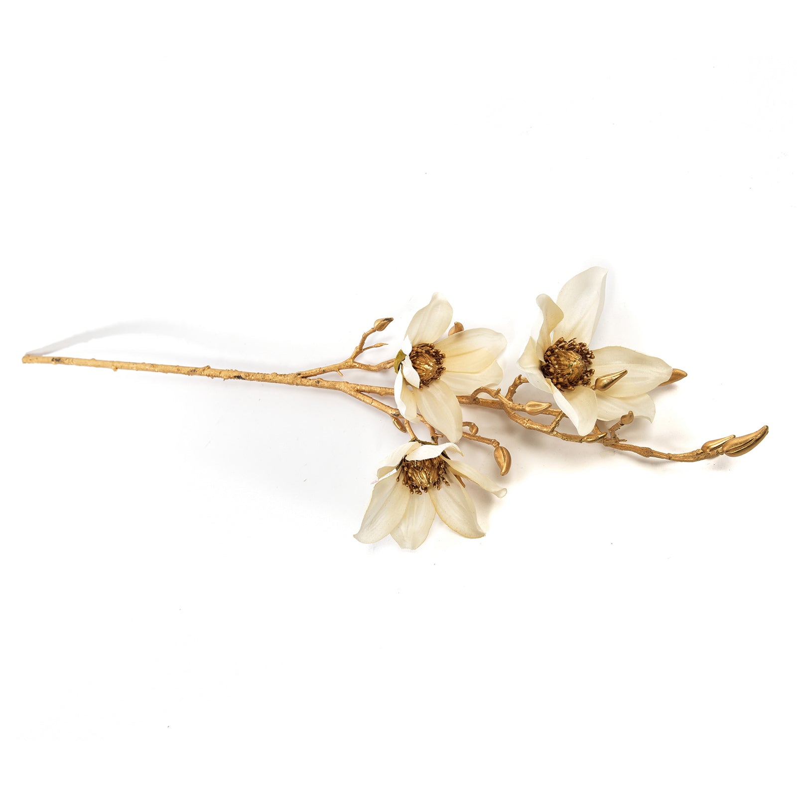 Ramo dorato con camelia per decorazione ambienti h 93 cm