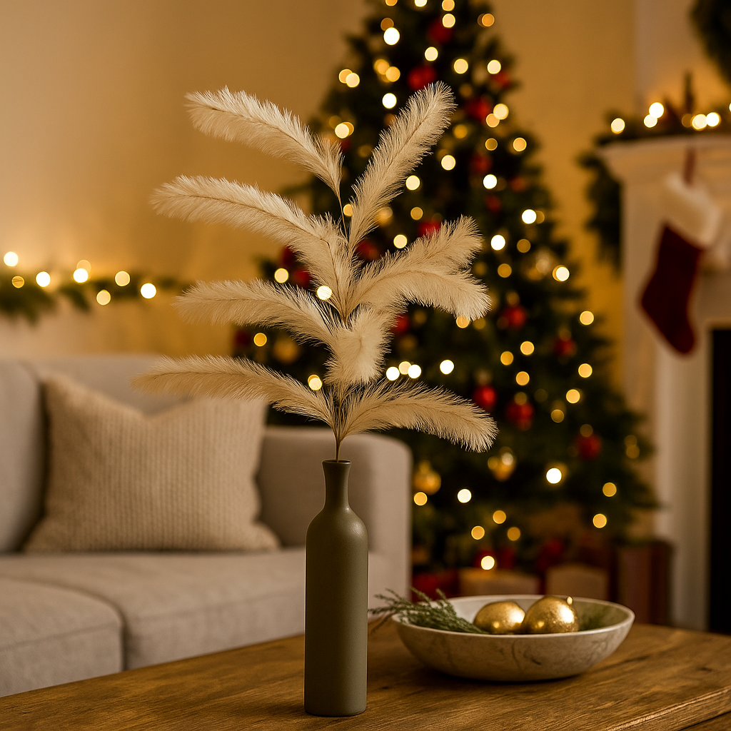 Ramo Oro con Piume "Pampa" decorazione natalizia per arredamento h 130 cm