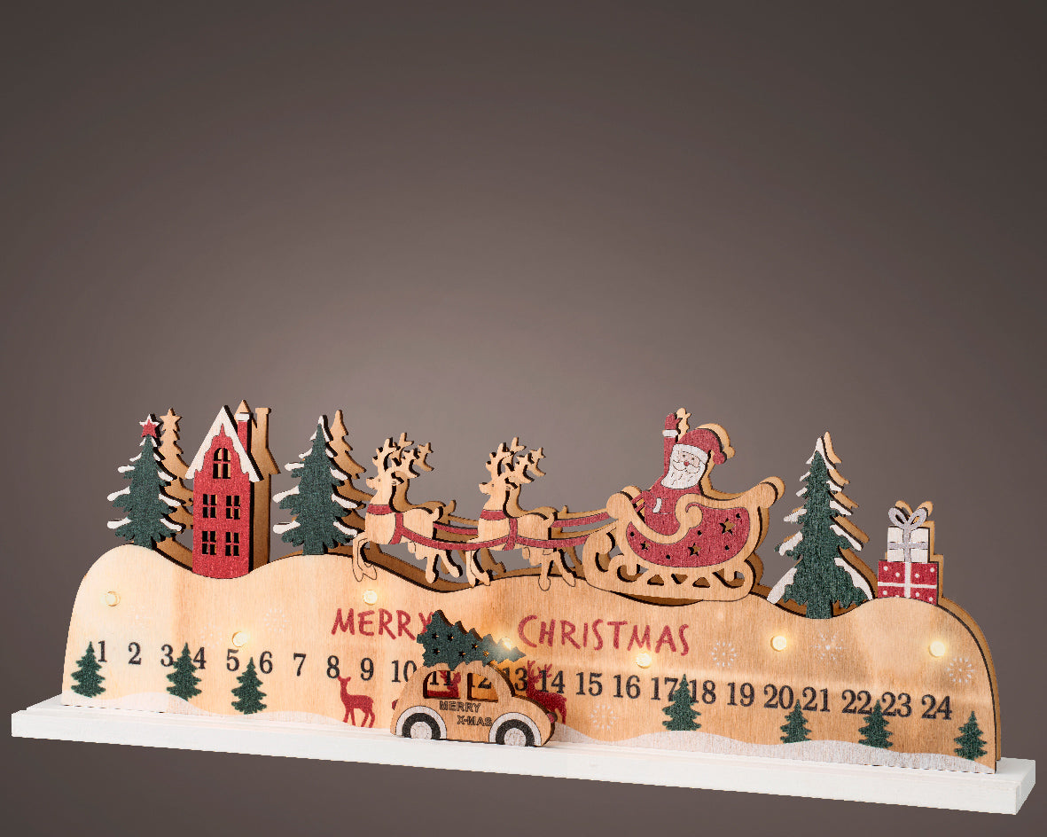 Scenario natalizio con calendario dell'avvento in compensato con Led, da 13 cm