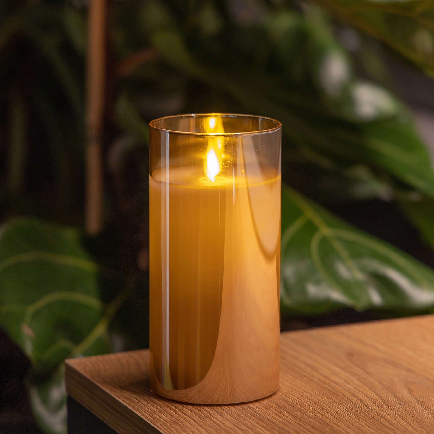 Candela in cera con bicchiere in vetro e luce a led effetto realistico