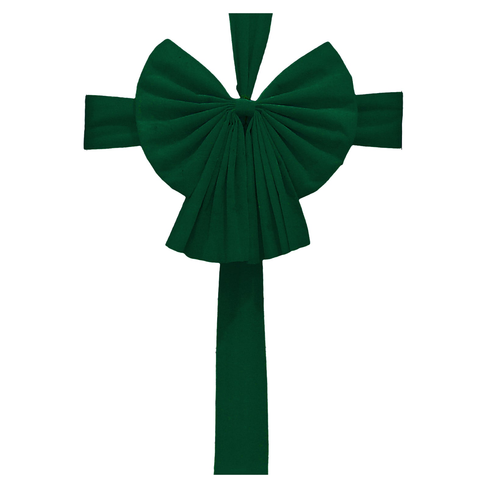 Fiocco in velluto imbottito verde decorazione natalizia per albero e ghirlanda dietro porta