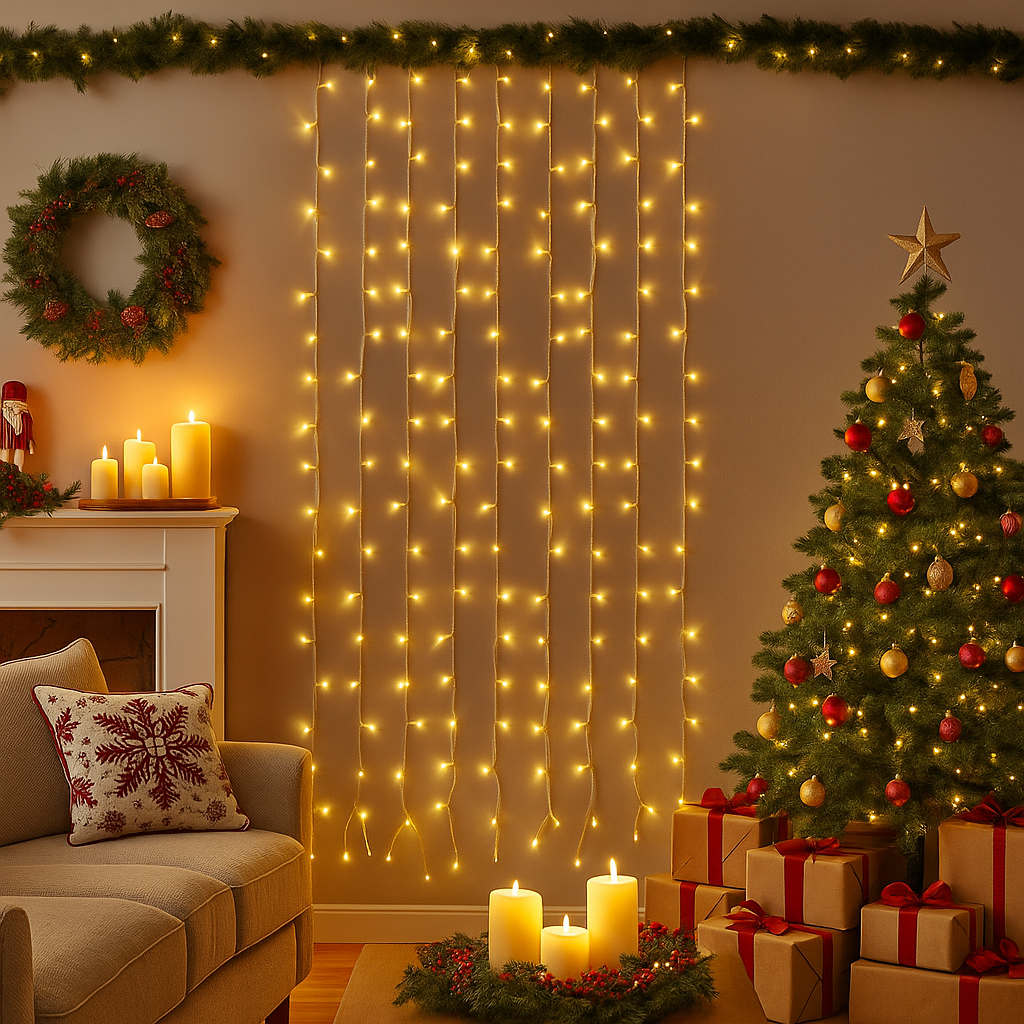 Cascata luminosa per esterno stalattite a led, decorazioni di natale in movimento