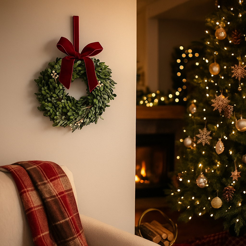 La corona natalizia “Lumiere” con luci LED è una decorazione luminosa e di grande impatto visivo, pensata per valorizzare ambienti interni con eleganza e atmosfera.