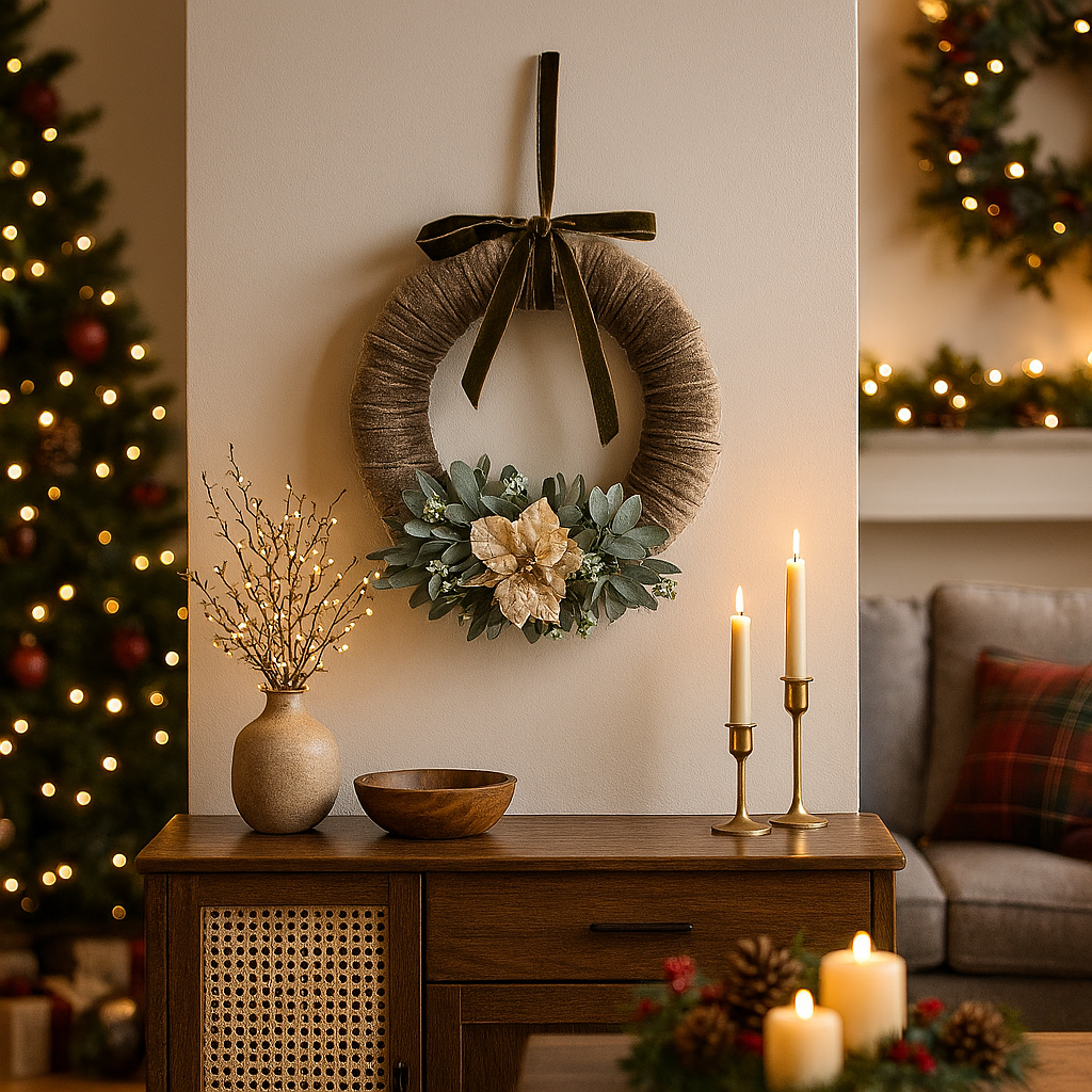 Design elegante e curato, spesso arricchito da aghi di pino, pigne, bacche o palline decorative, a seconda della variante