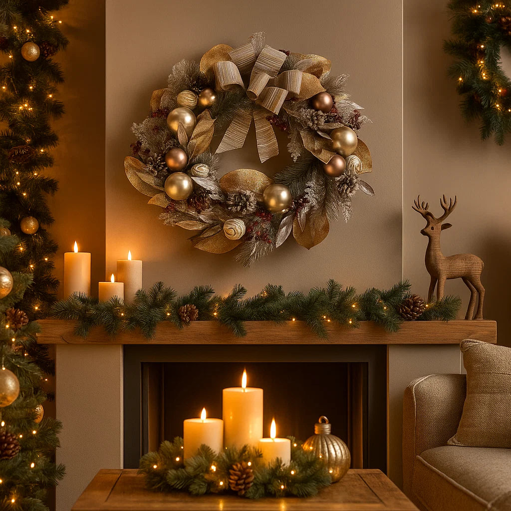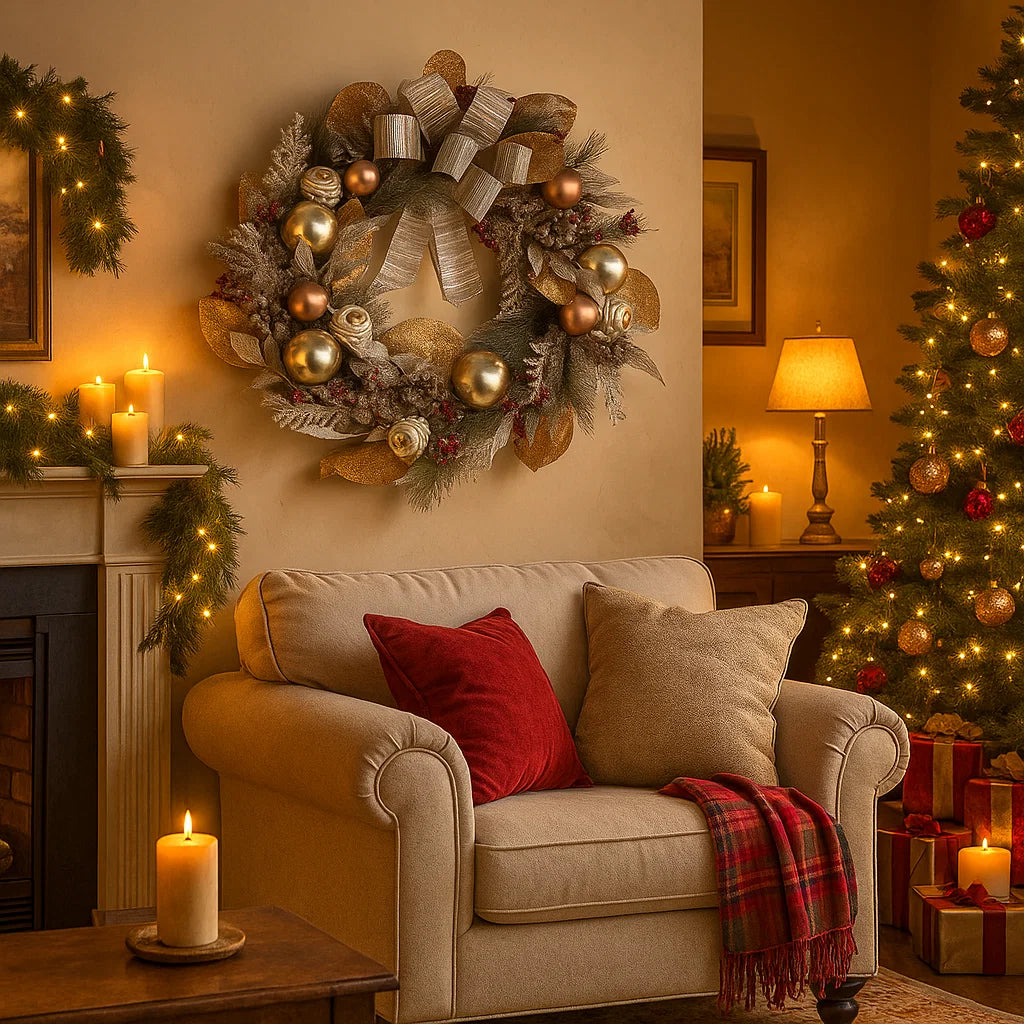 Corona dietroporta con sfere e fiocco per decorazioni natalizie h 4 cm