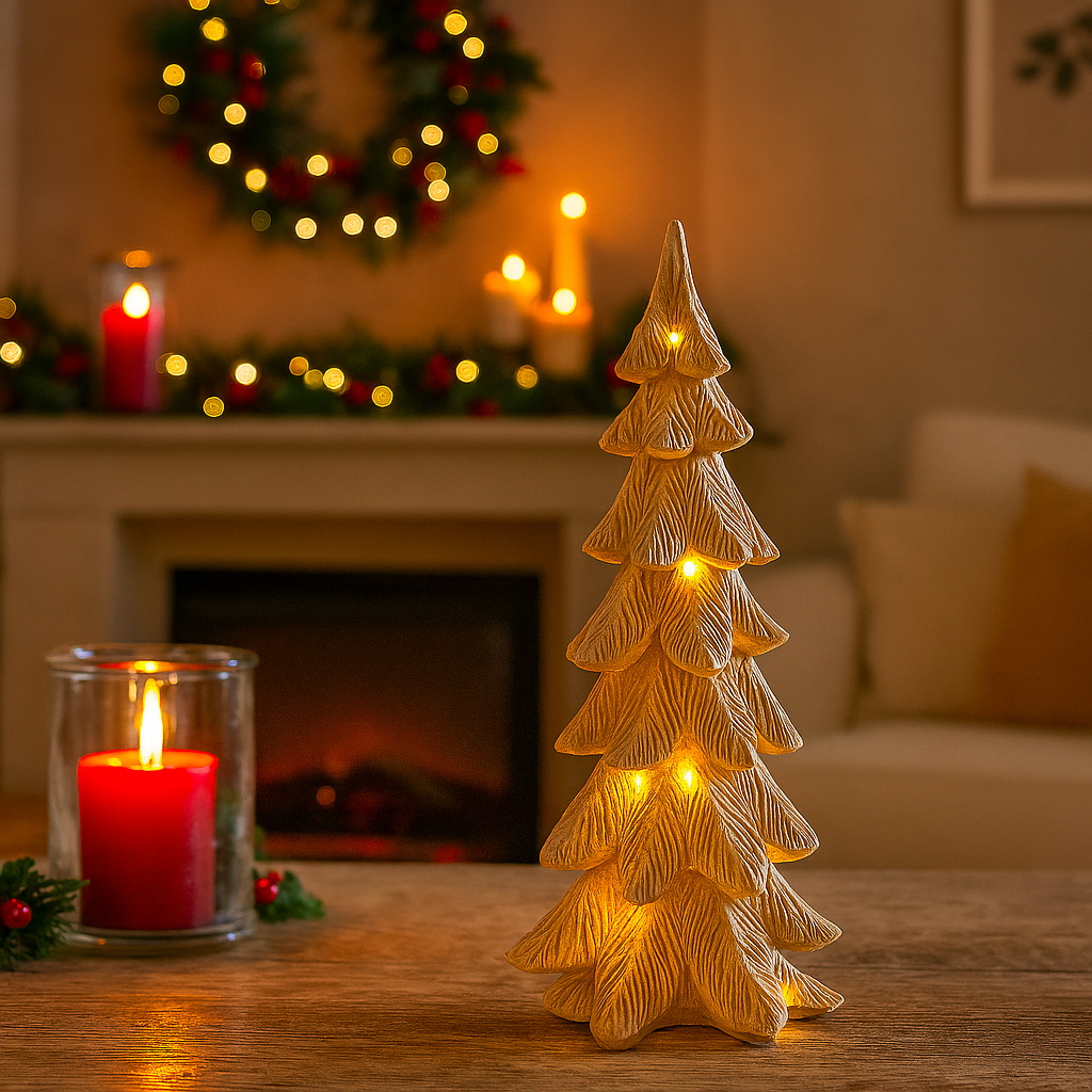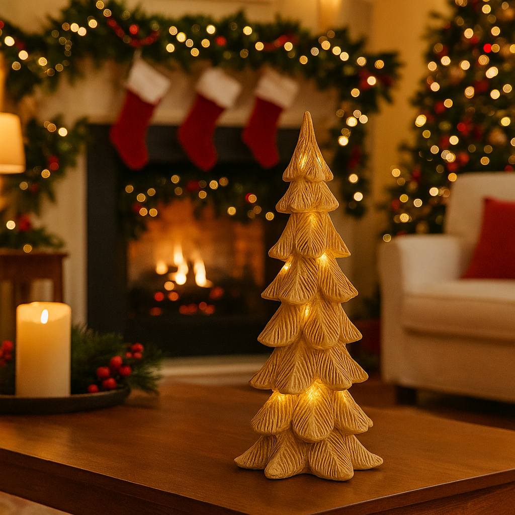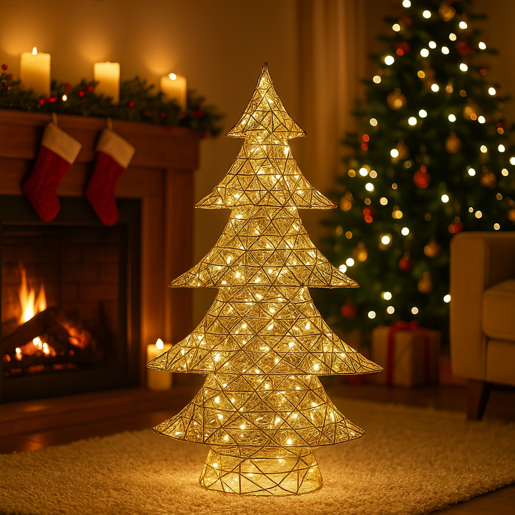 La figura luminosa rappresenta in maniera stilizzata un pino natalizio. Illumina l'ambiente con una luce calda!