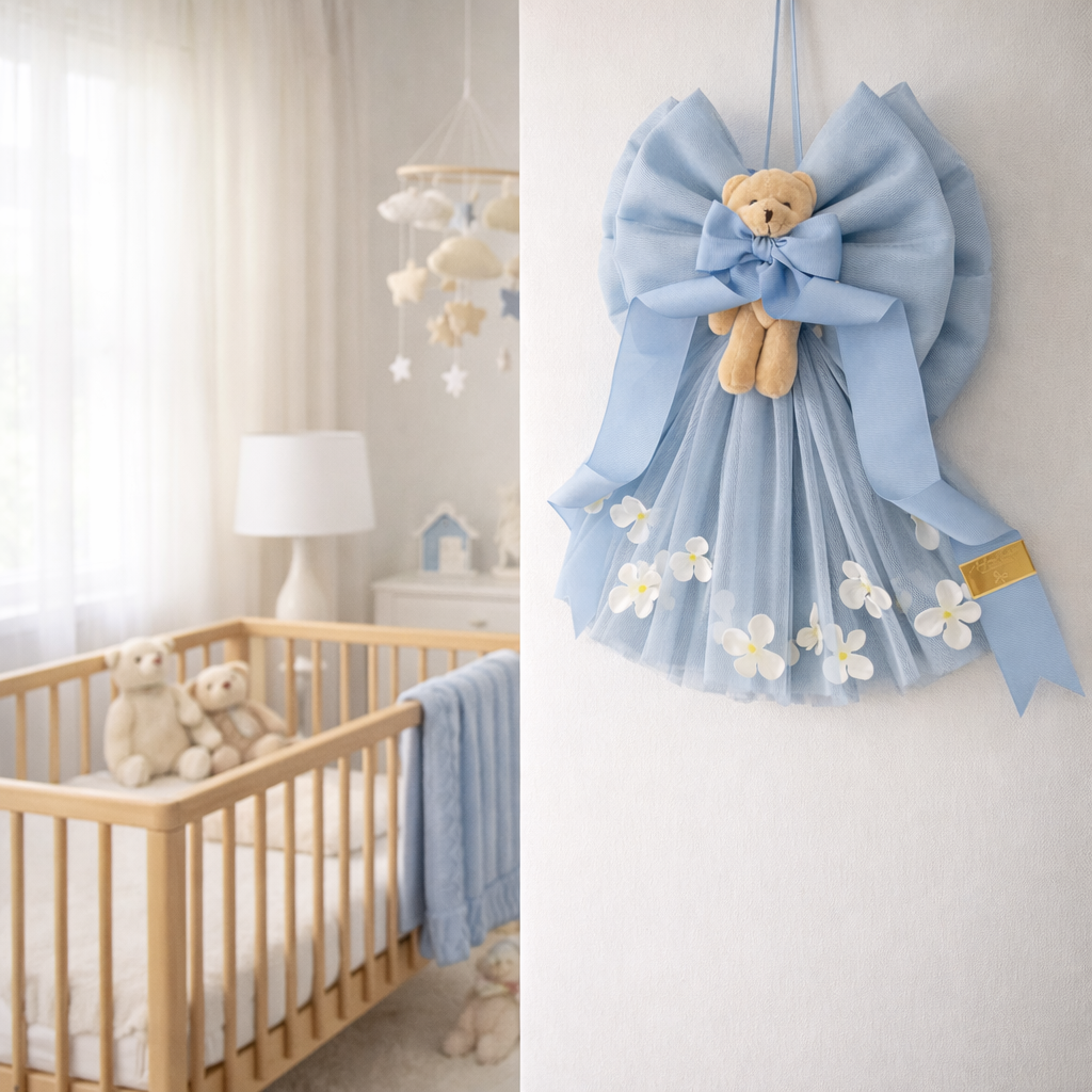 Rendi ancora più speciale l’annuncio della nascita con il dolcissimo fiocchetto nascita "Teddy", una decorazione elegante e ricca di dettagli pensata per celebrare uno dei momenti più emozionanti della vita.